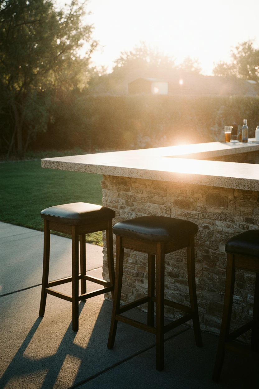 An outdoor working fireplace built from rustic stone transforms a backyard into a year-round social space. Its authentic flame offers both warmth and charm, creating an irresistible focal point for friends and family gatherings.