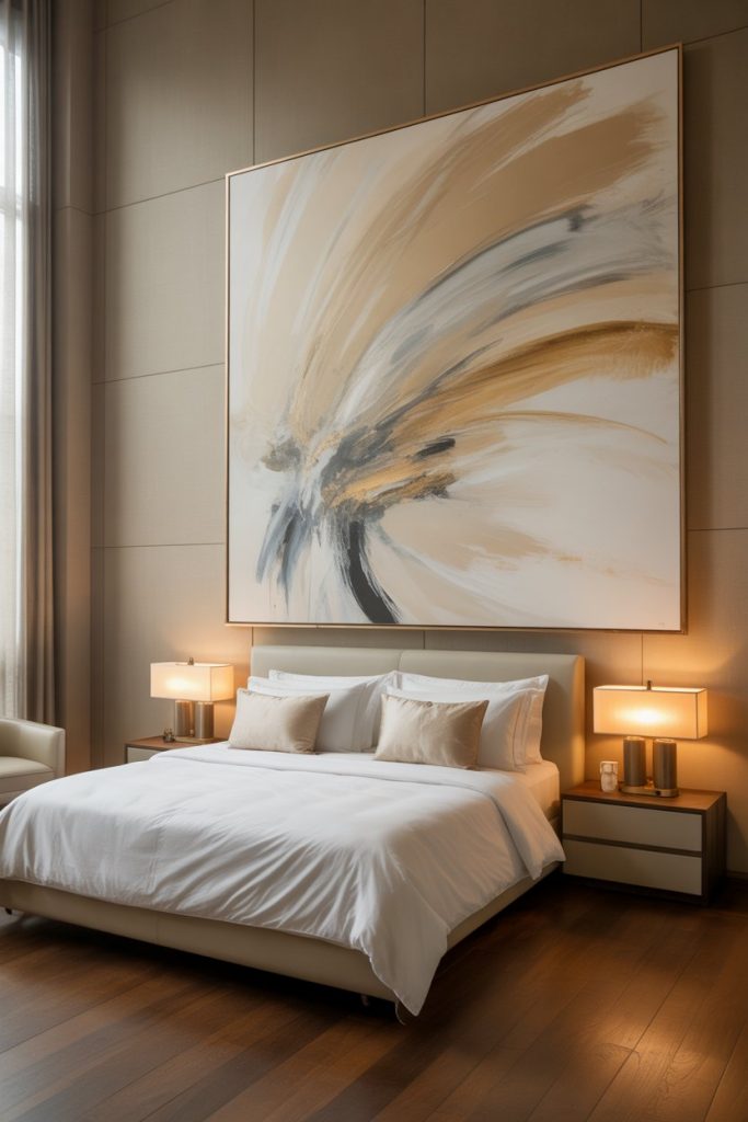 Let one oversized canvas or framed photograph define the wall decor instead of a collage. Large-scale art instantly feels luxurious and uncluttered. Choose abstract neutrals for modern calm or black-and-white portraiture for depth. Elle Décor editors say buyers now invest in single meaningful pieces, not gallery walls.