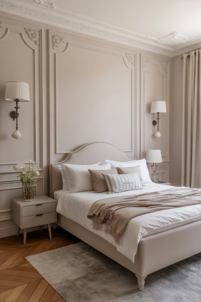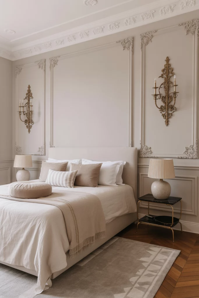Classic wall molding instantly adds a classy finish, especially paired with muted colors and vintage-style sconces. This look blends aesthetic charm with modern furniture for balance. Even renters copy it using peel-and-stick trim. It’s one of the most shared inspo ideas on design TikTok because it elevates a room without crowding it.