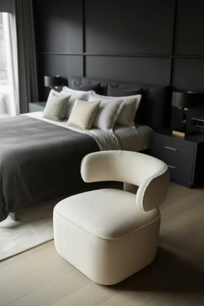 A crisp black and white palette stays iconic when softened with boucle chairs, plush throws, and matte finishes. Perfect for ideas for modern luxury couples who want bold contrast but still want comfort. Add one warm accent—tan leather or oak—to keep it livable, not sterile.