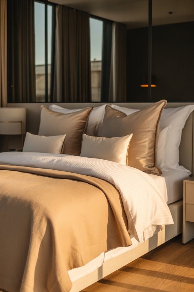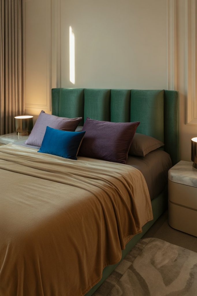 Tactile fabrics like velvet headboards and cashmere throws turn a simple room into a sensual sanctuary. Deep jewel tones or muted taupe both work depending on the color schemes. Designers agree: luxury isn’t about pattern—it’s about touch.