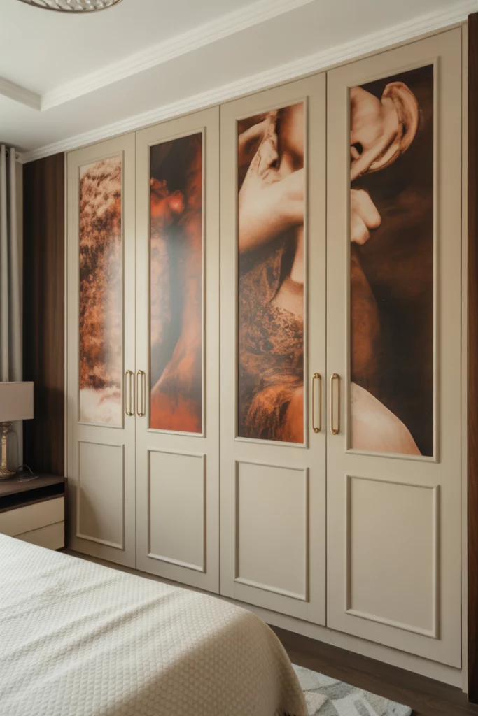 For people looking to integrate storage and decor and to avoid personality-less walls, closet doors can be turned into framed art panels or fabric-covered inserts. It can complement both the boldly designed and the neutral rooms. It creates the illusion of custom millwork at a fraction of the cost.