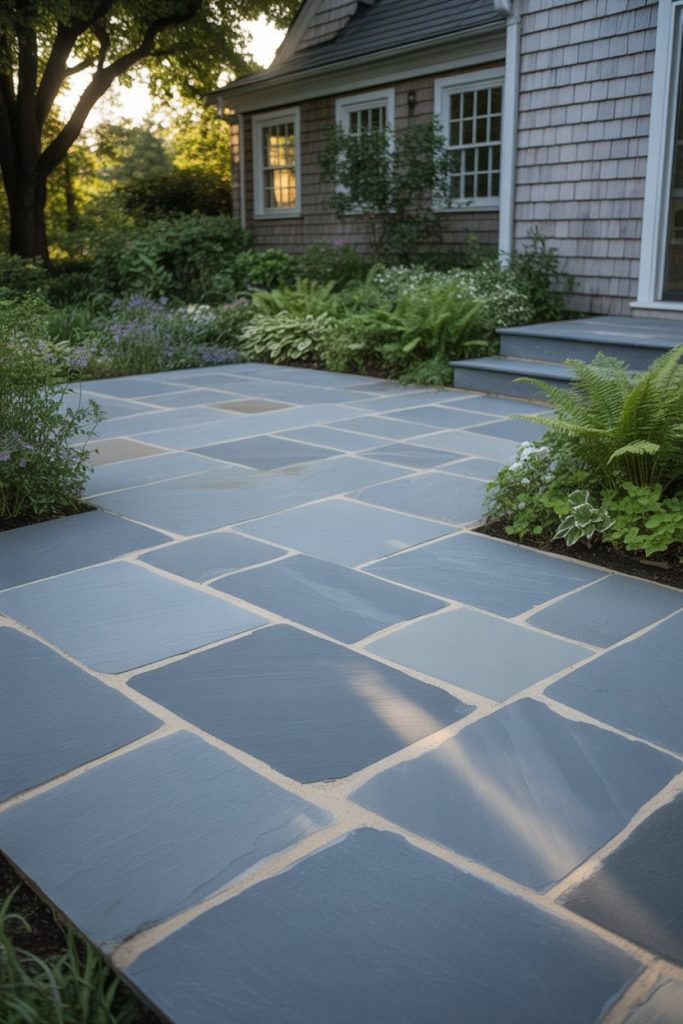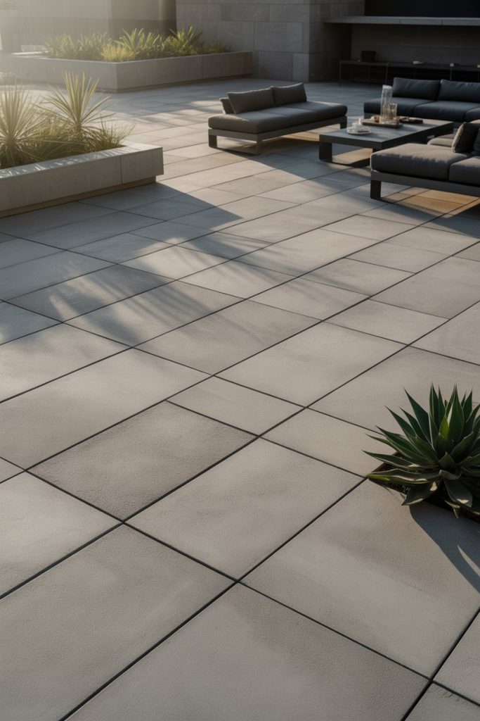 Ultra-contemporary homes demand equally modern hardscaping, and oversized concrete slabs in large formats deliver exactly that aesthetic. Using 24×24 concrete pavers or even larger custom-poured sections creates clean horizontal planes with minimal visual interruption. This layout has become signature for mid-century modern renovations in California and minimalist new builds throughout trendy urban neighborhoods.