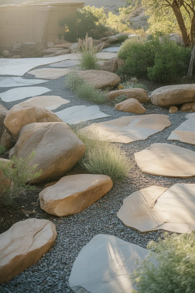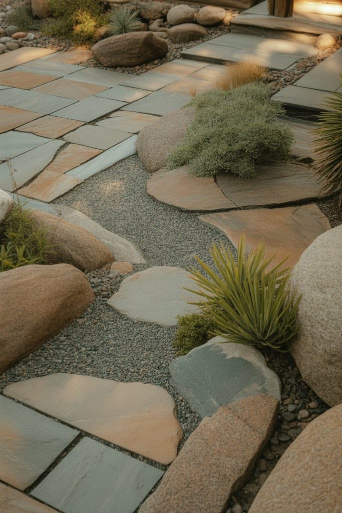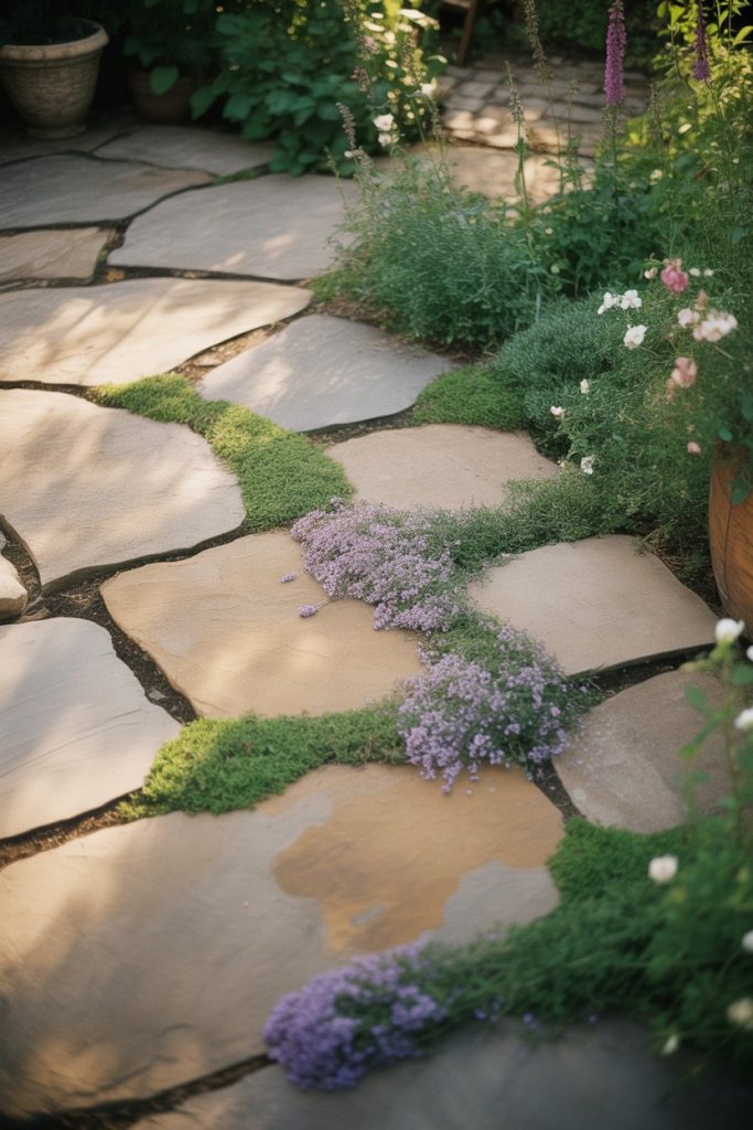 This style works best in regions with distinct seasons—the Mid-Atlantic, Midwest, and Pacific Northwest—where the naturalistic design harmonizes with changing landscape colors throughout the year. Real homeowners often start with just the stone installation and add the inter-planting later as a second-phase project, which spreads out the budget and allows them to experiment with different groundcover varieties before committing to the entire surface.