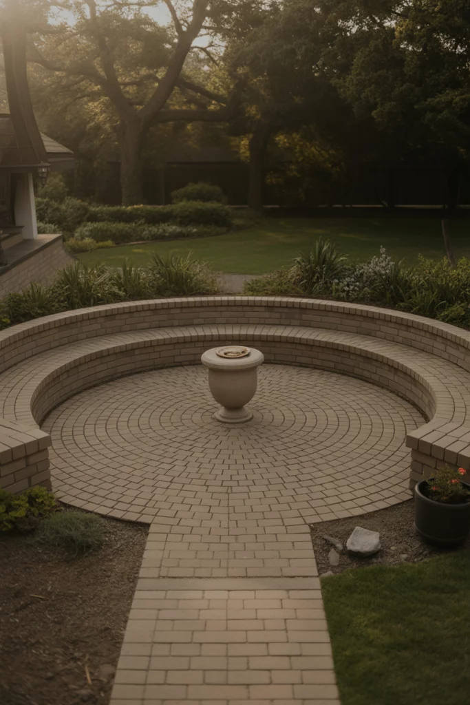 The circular layout offers a practical advantage many homeowners don’t initially consider: it eliminates awkward corner spaces where furniture never quite fits. Every seat around a circular patio has an equally good view and access to the fire, creating a more democratic entertaining space where no guest feels stuck in a “bad spot” away from the warmth and conversation.