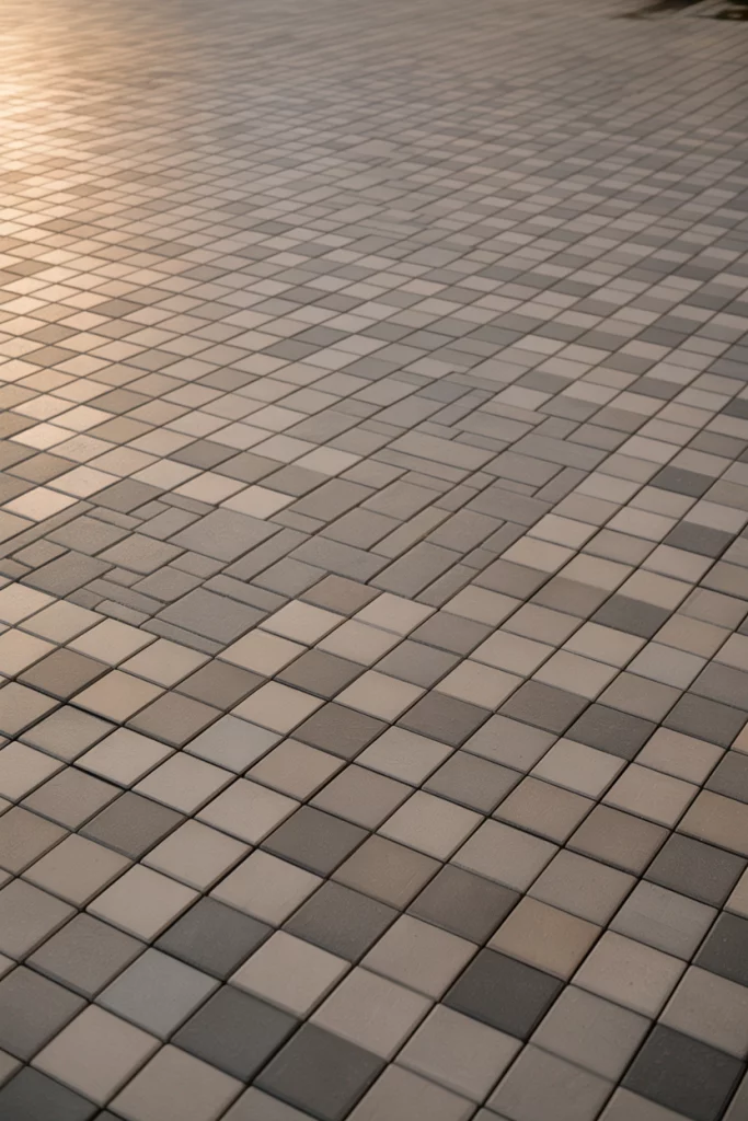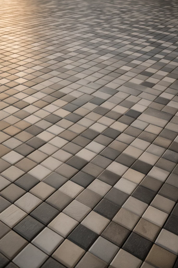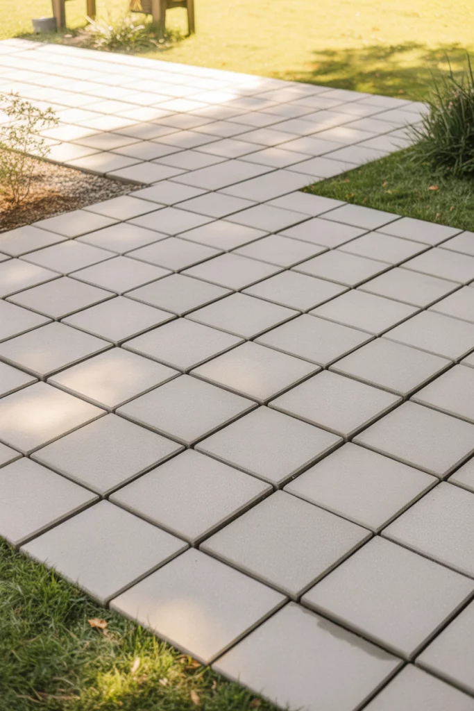 Creating visual complexity through mixed paver sizes—combining 12×12, 16×16, and 24×24 pieces—generates a custom-designed appearance while using standard stock materials. This modular approach allows cheap concrete pavers to mimic expensive natural stone installations when arranged thoughtfully. The varied module sizes break up visual monotony, making even simple square pavers look architecturally sophisticated.