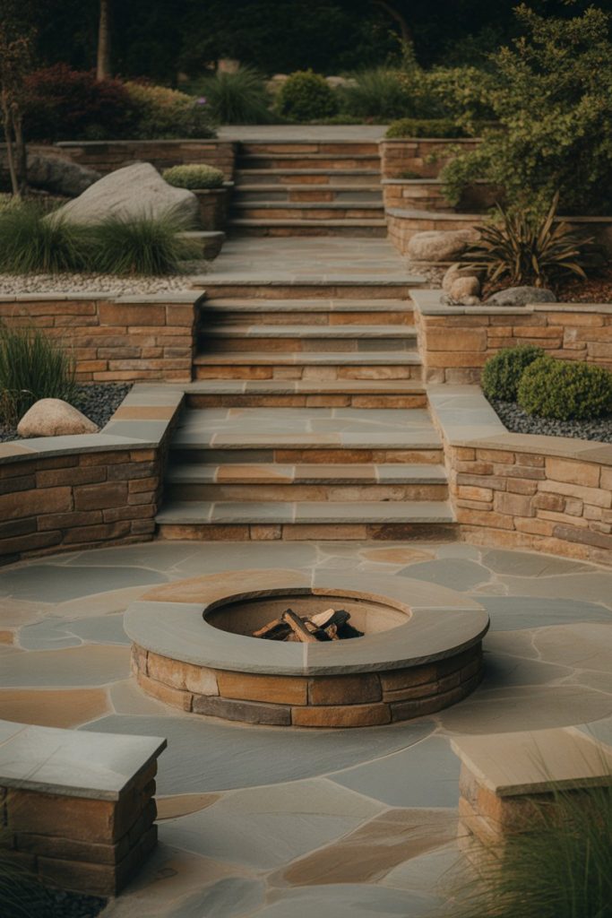 Blending rock and pavers creates an organic transition between hardscape and landscape that feels collected rather than contrived. This approach might use paving stones for the main patio surface while incorporating boulders as natural seating elements and crushed stone pathways radiating outward. It’s particularly effective in Rocky Mountain and Pacific Northwest settings where the design echoes the surrounding natural environment.
