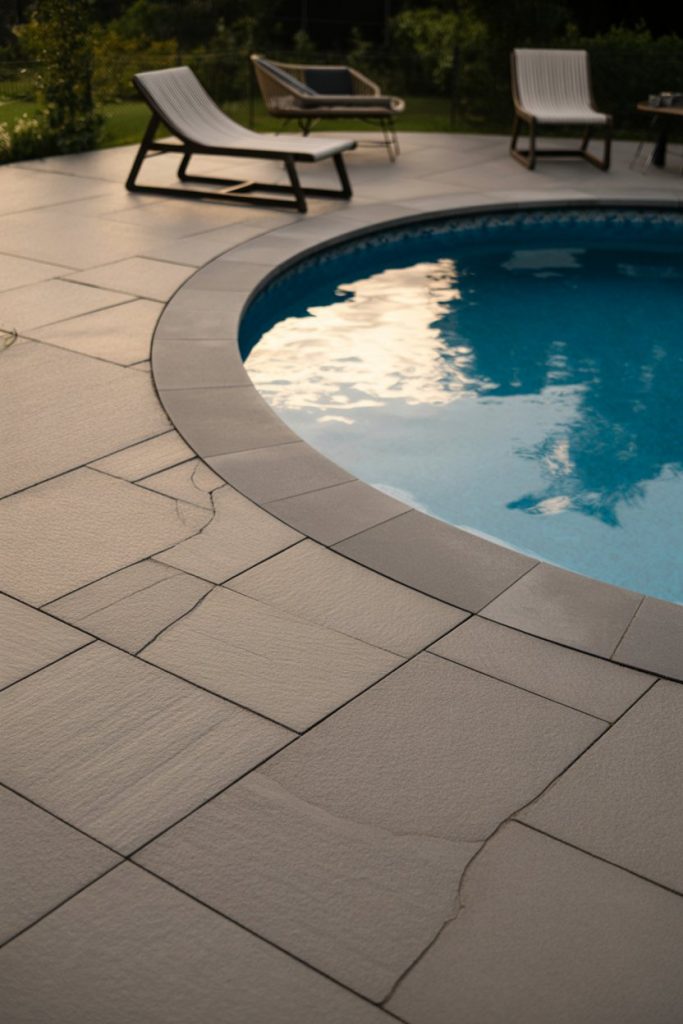 Designing your paver patio to seamlessly flow around an above ground pool creates a cohesive backyard resort experience. Using large format pavers like 24×24 sizes minimizes joint lines and speeds installation around the pool’s curved perimeter. The key is selecting slip-resistant pavers with textured surfaces that remain safe when wet—a critical consideration for families with children.