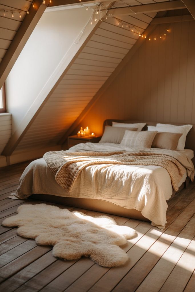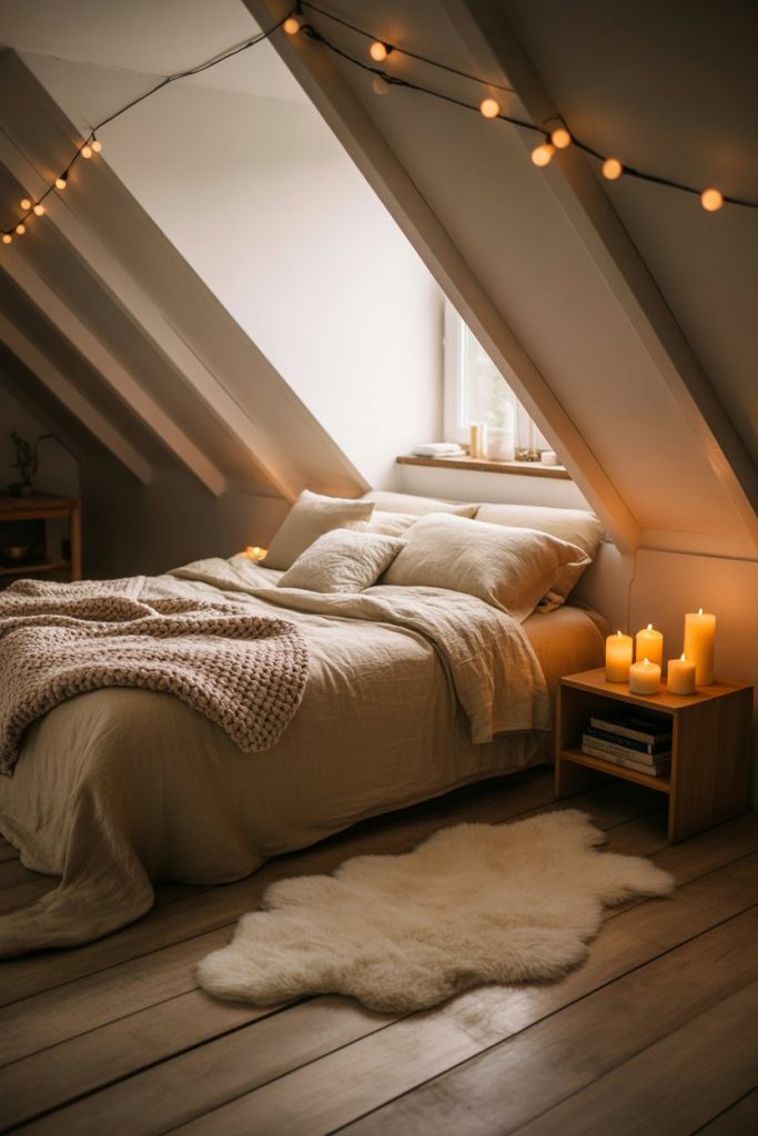 The cozy aesthetic trend and attic bedrooms are natural partners. Layer soft textures, warm lighting, natural materials, and a restrained color palette to create a space that feels like a permanent retreat. The low ceilings that might feel cramped in other contexts actually support the cocooning effect that makes hygge-inspired spaces so appealing.