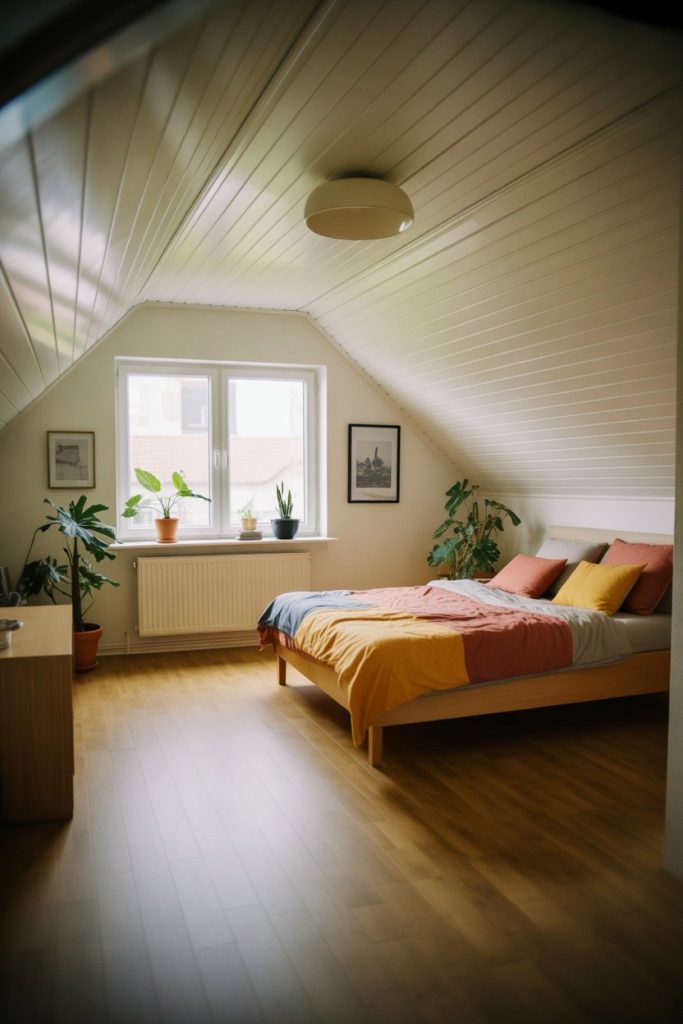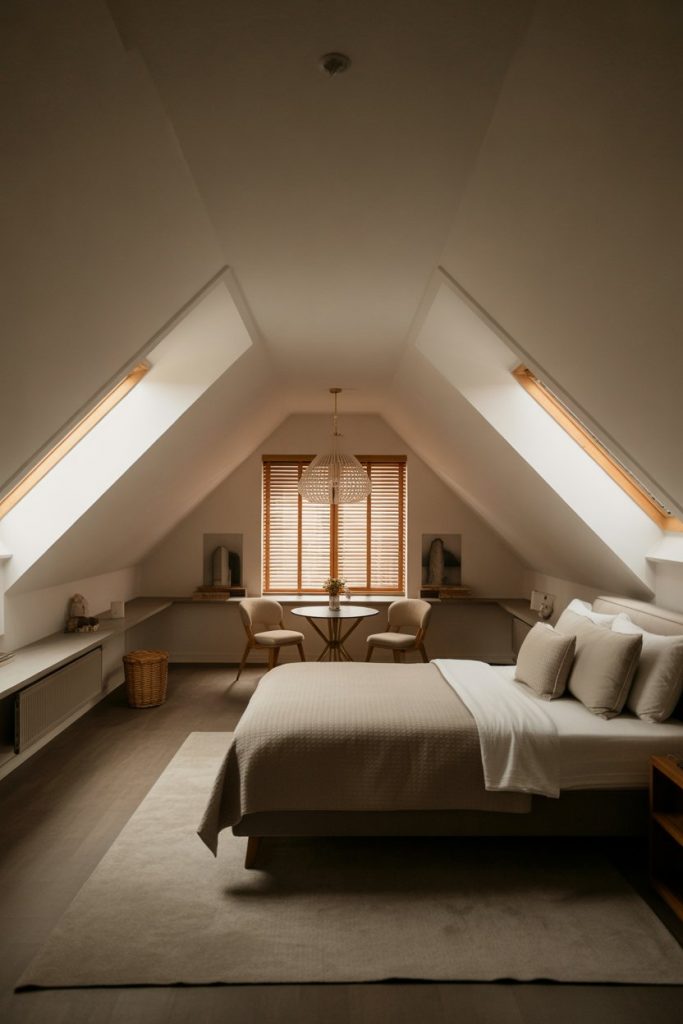 This approach works best in attics with limited natural light or in homes where you want a consistent, neutral backdrop throughout. The white ceiling allows you to experiment with bolder choices on walls or in furnishings without the space feeling overwhelming. It’s also the most rental-friendly option if you’re converting an attic in a property you don’t own—white paint is universally acceptable and easy to touch up.