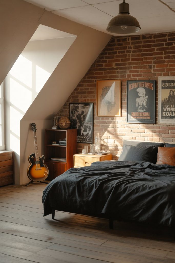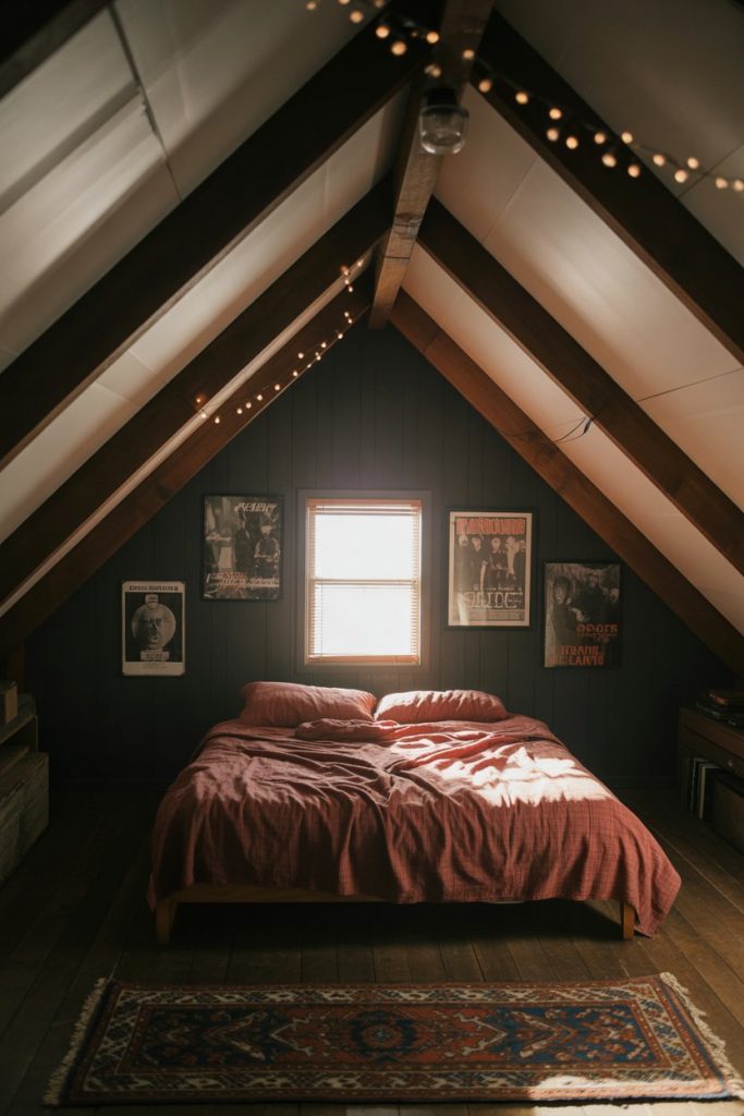 The grunge aesthetic—think Seattle in the ’90s—translates surprisingly well to attic bedrooms. Exposed elements, raw materials, vintage finds, and a slightly undone quality all work with the inherent roughness of attic architecture. Layer in dark colors, worn textiles, and personal collections to create a space that feels authentic rather than designed. This is particularly appealing to teens and young adults who want a space that reflects their personality.