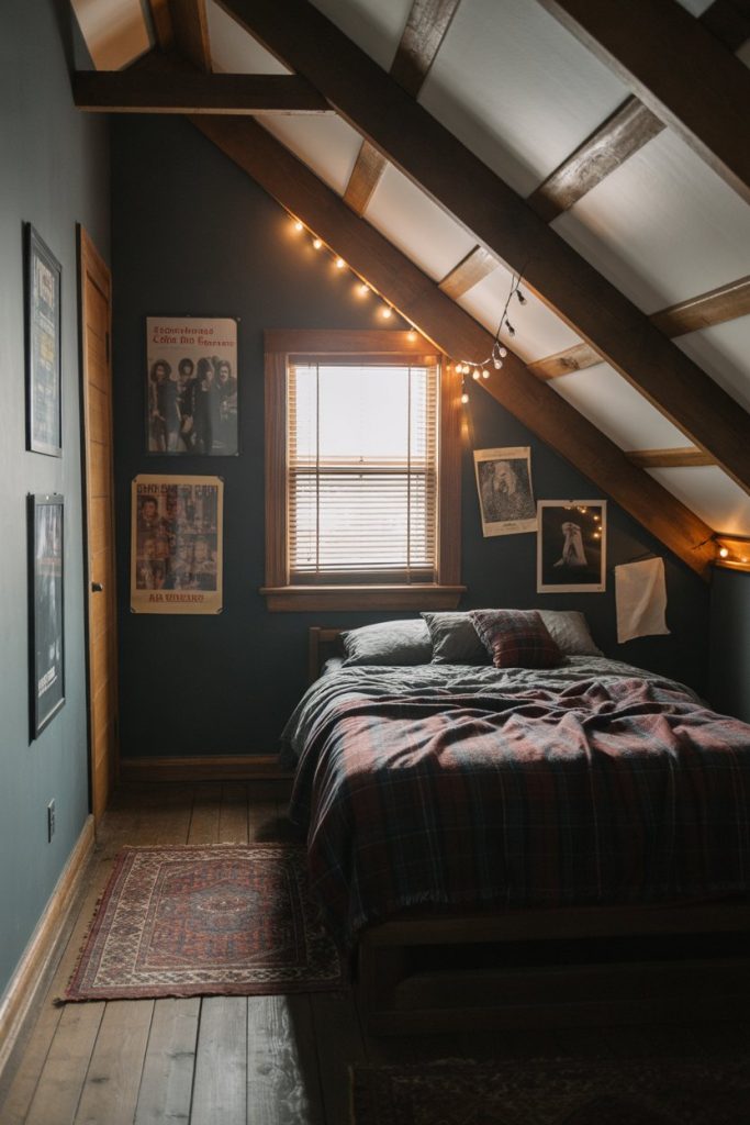 Teens gravitate toward attic bedrooms because they offer privacy and separation from the rest of the house. For an aesthetic grunge vibe, lean into darker colors, exposed brick or wood, string lights, and vintage finds. The raw, unfinished quality that often comes with attic spaces actually supports this style better than a pristine bedroom would.