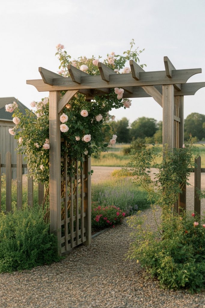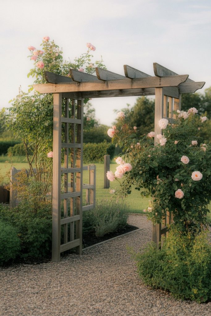 An arbor like this typically costs $300–600 in materials for a six-foot-wide by eight-foot-tall structure, and most DIYers can complete it in a weekend with basic carpentry skills. Set the posts in concrete footings at least eighteen inches deep to prevent frost heaving in cold climates. Choose disease-resistant rose varieties like ‘New Dawn’ or ‘Zephirine Drouhin’ that thrive with minimal spraying—important for keeping maintenance low once the initial structure is built.
