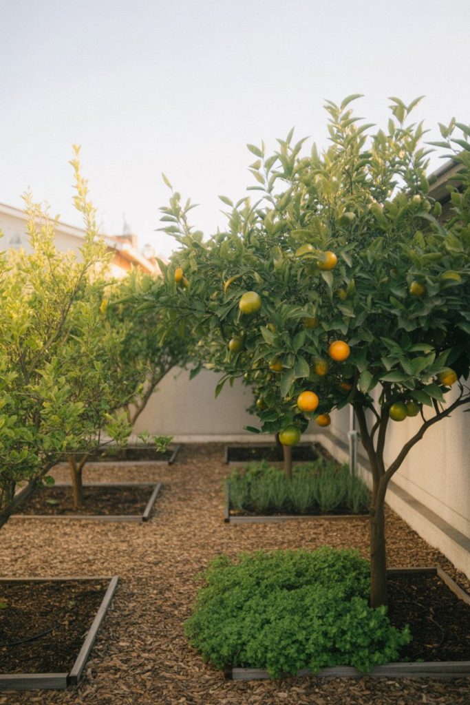 Even a small yard can accommodate fruit trees when you choose dwarf varieties grafted onto size-controlling rootstock. Plant a mini-orchard with four to six trees spaced eight to ten feet apart—consider mixing citrus varieties in warm climates (Meyer lemon, Persian lime, tangerine) or stone fruits and apples in temperate regions. Underplant with low-growing herbs like thyme or strawberries that thrive in dappled shade. This layout delivers fresh fruit seasonally while creating a productive landscape feature that’s more interesting than a standard lawn. Espaliered trees trained flat against a fence or wall save even more space.
