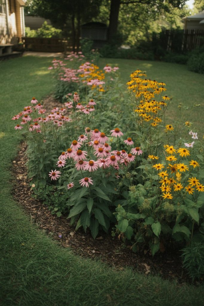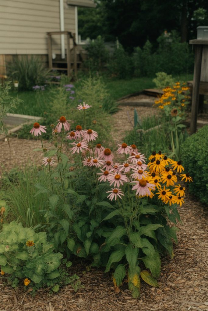 A rain garden captures and filters stormwater runoff while creating a seasonal wildflower display that supports pollinators and birds. Excavate a shallow depression (six to twelve inches deep) in a low spot where water naturally collects, amend the soil with compost, then plant native species suited to both wet and dry conditions—coneflowers, black-eyed Susans, Joe Pye weed, and cardinal flower are reliable performers across much of the U.S. The garden floods briefly during heavy rains, then drains within twenty-four hours. This simple natural feature reduces pressure on storm sewers while adding seasonal color and wildlife habitat to previously underutilized yard areas.