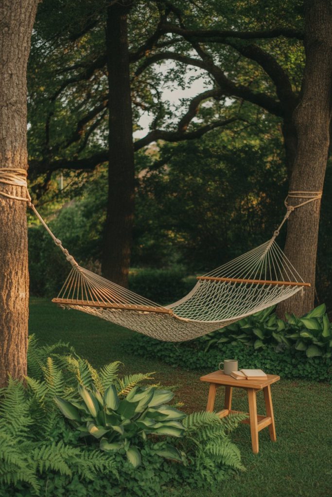 Create a dedicated relaxation zone by planting two shade trees fifteen to twenty feet apart, then hanging a hammock between them once trunks reach six inches in diameter. Choose fast-growing species like red maple, river birch, or tulip poplar in temperate zones, or live oak and camphor in the South. Underplant with shade-loving perennials and groundcovers—hostas, ferns, astilbe—that create a lush, cooling effect. Add a small side table and outdoor lanterns to make the space fully functional for afternoon reading or evening stargazing. This easy upgrade transforms an unused lawn corner into the most coveted spot in your yard.