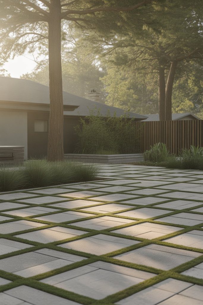 Extend your driveway or create a secondary parking pad using permeable pavers that allow rainwater to filter through rather than running off into storm drains. This contemporary approach addresses both practical needs and environmental concerns, especially in areas with strict stormwater management regulations. Choose pavers with wide joints filled with gravel or plant grass varieties like mondo grass in the gaps for a softer, greener look. The layout can accommodate RVs, boats, or extra guest parking without creating an asphalt heat island.