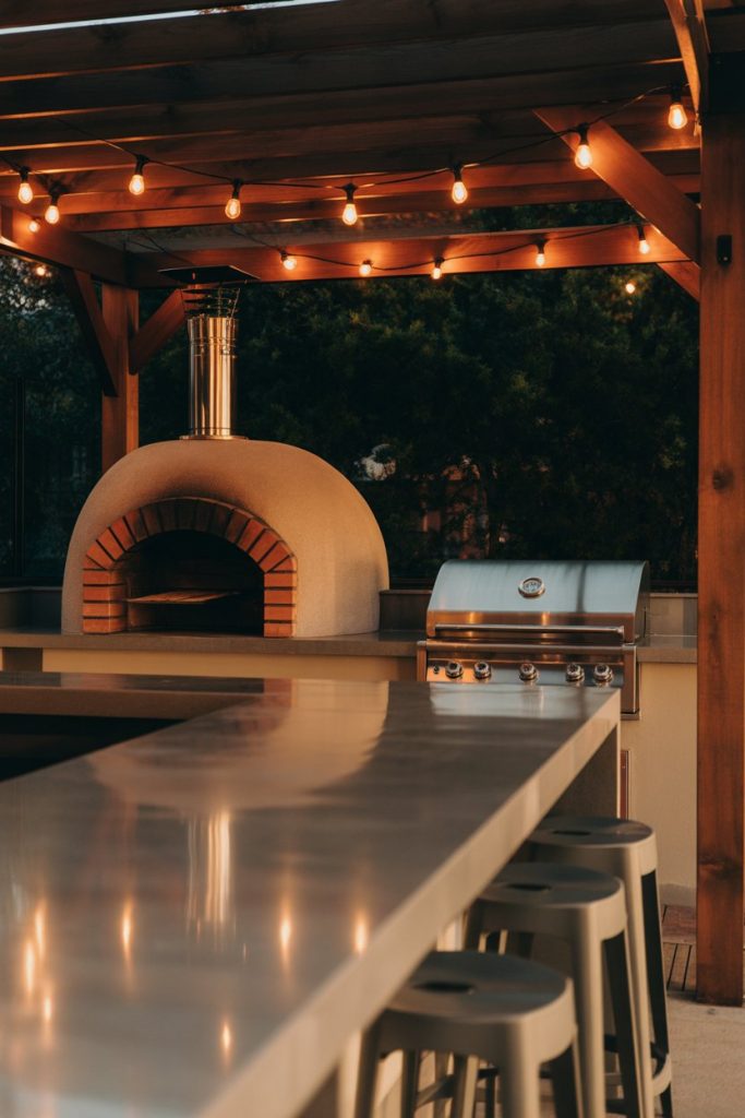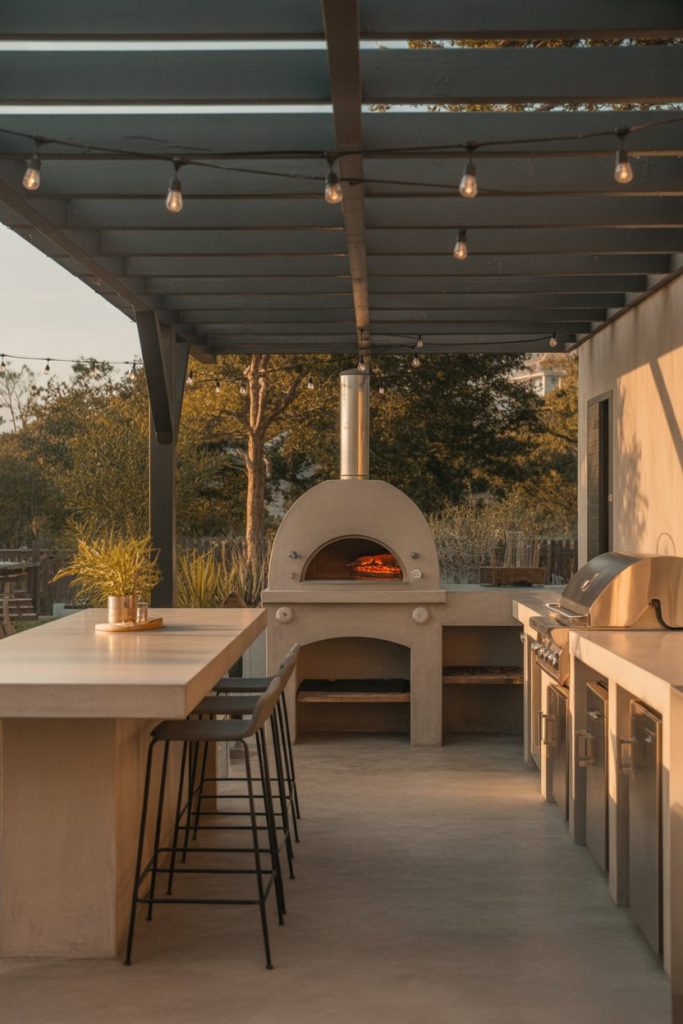A dedicated outdoor kitchen transforms backyard entertaining, especially in warm-climate states where you can cook outside year-round. Build a simple structure with a metal or wood-beam pergola overhead, then install a pizza oven, built-in grill, and prep counter with weatherproof cabinetry below. Concrete countertops or porcelain tile surfaces withstand heat and weather better than granite. Include a small beverage fridge and sink with hot water if your budget allows—these upgrades make the space genuinely functional rather than decorative.