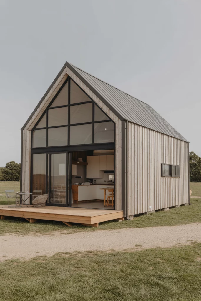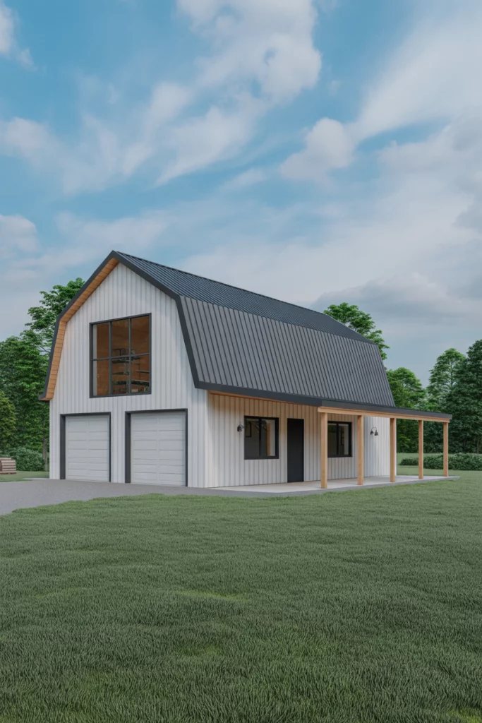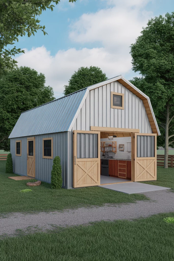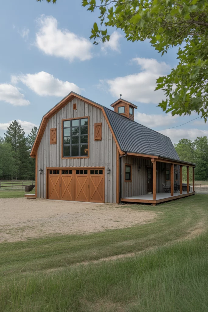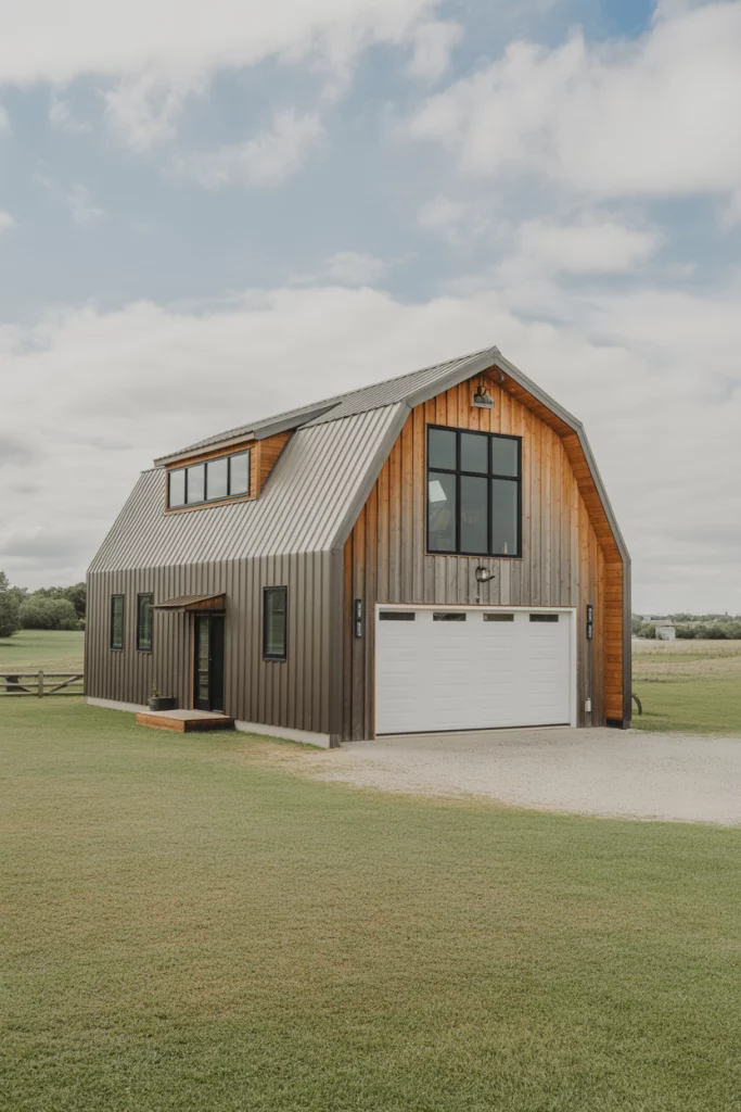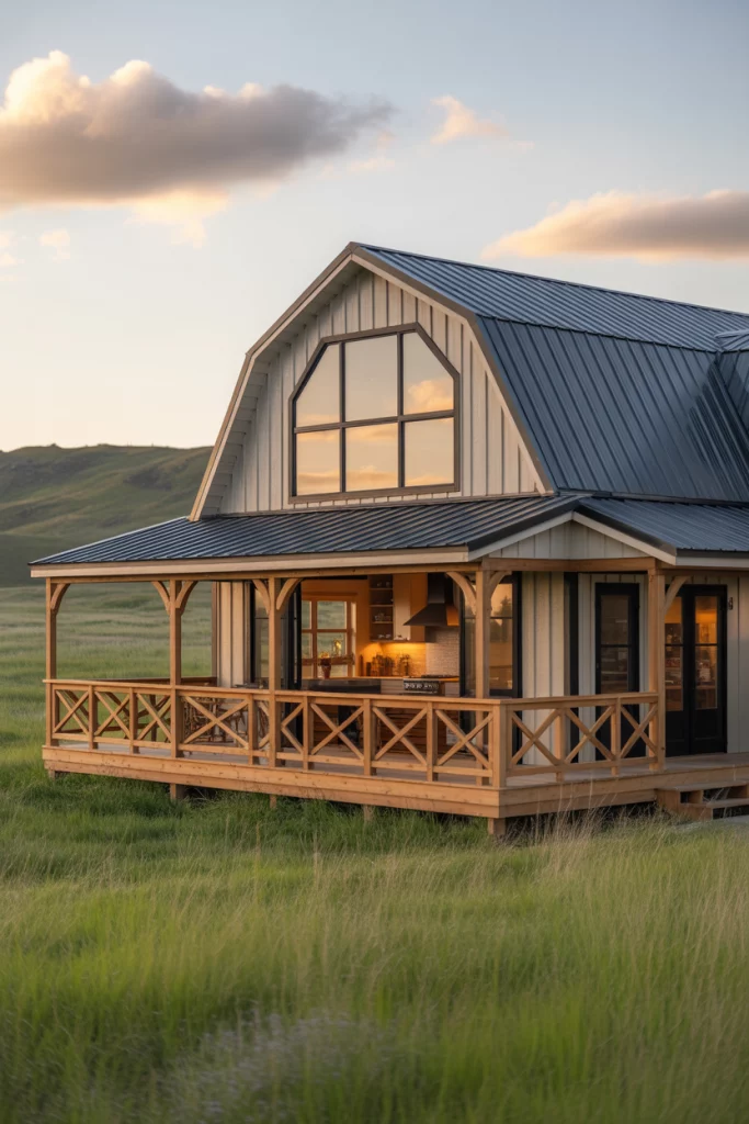 This affordable barndo focuses on small floor plans that remain charming, perfect for young couples or downsizers. The one-level layout boasts an open kitchen, cozy living room, and one or two bedrooms, all designed for efficiency and easy construction. Add in a compact garage or tool shed for extra practical points. This is proof that living simply can still be beautiful.