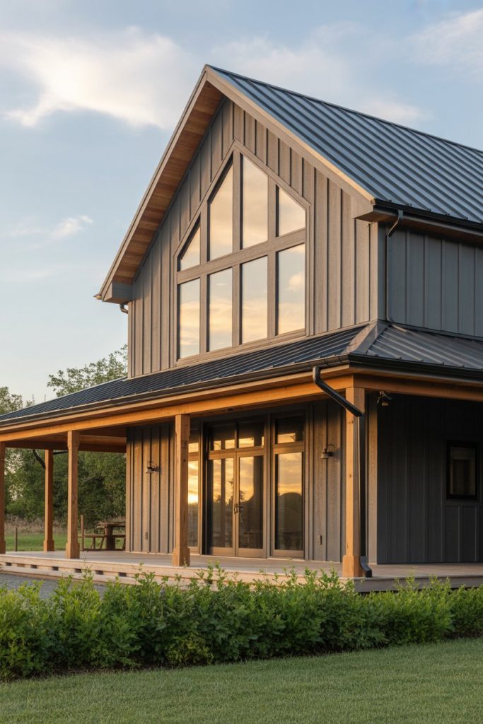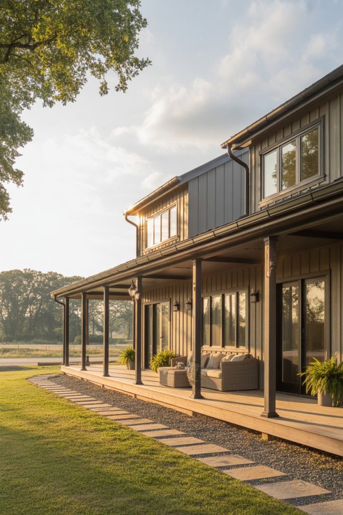 Nothing quite stands out like a black barndominium. Using matte steel or dark siding, the exterior colors give the perfect contrast with wood or metal accents. Interieurs may be either modern minimalism or rustic farmhouse warmth. Designers like Joanna Gaines have put these bold contrasts on center stage, proving that going black can be equally edgy and elegant.