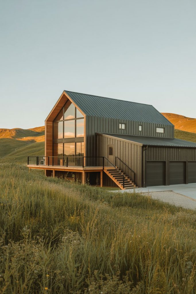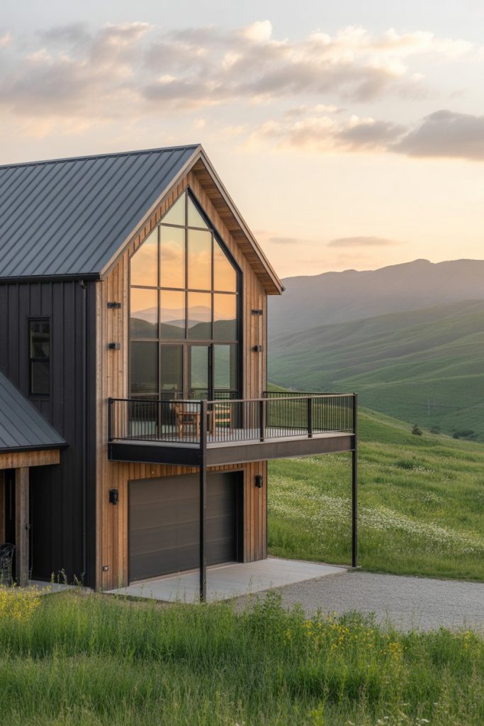 The two-story barndo really maximizes space and views. The lower level will host either a shop or a garage and the top floor will hold the living quarters of Interiors Modern. This design works well on small lots or scenic land, giving you height without too much width. From standing in the balcony of one of these in Montana, it occurred to me how a 2-story layout can feel grand and grounded at the same time.