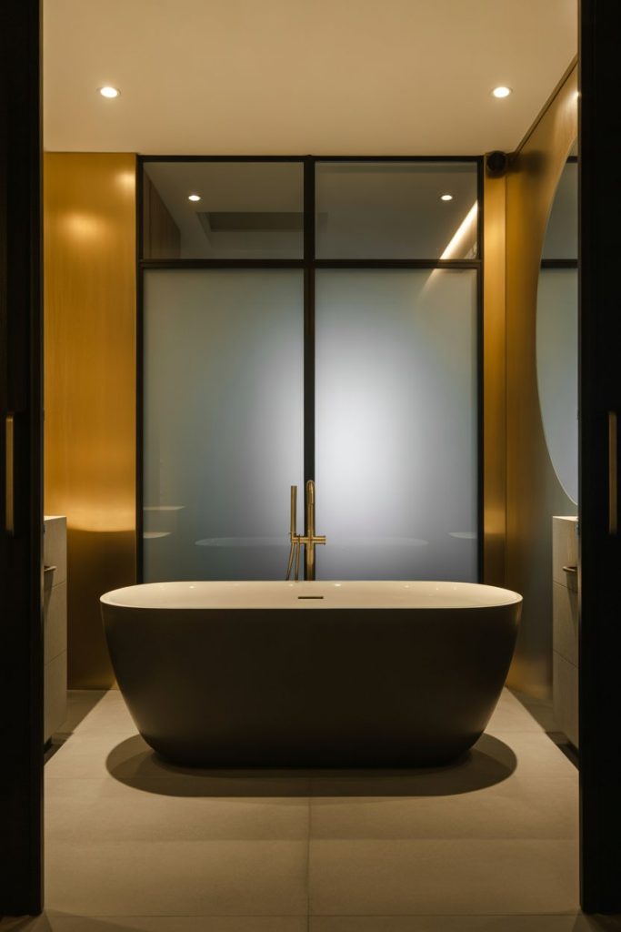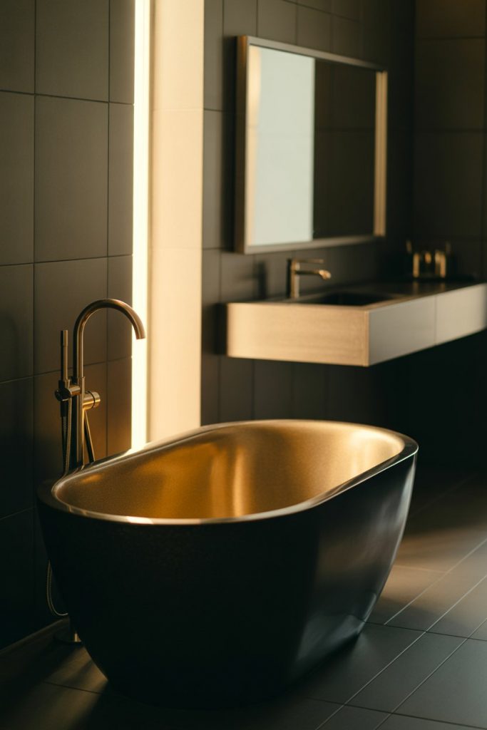 The minimalist approach continues to dominate, but in 2026 it’s being elevated with black and gold finishes. Think matte black faucets paired with subtle golden lighting fixtures, creating a sleek yet luxurious bathroom space. This aesthetic works especially well in modern apartment bathrooms where space is limited but style is essential. Design experts like Kelly Wearstler highlight how restraint with bold accents can feel both timeless and fresh.