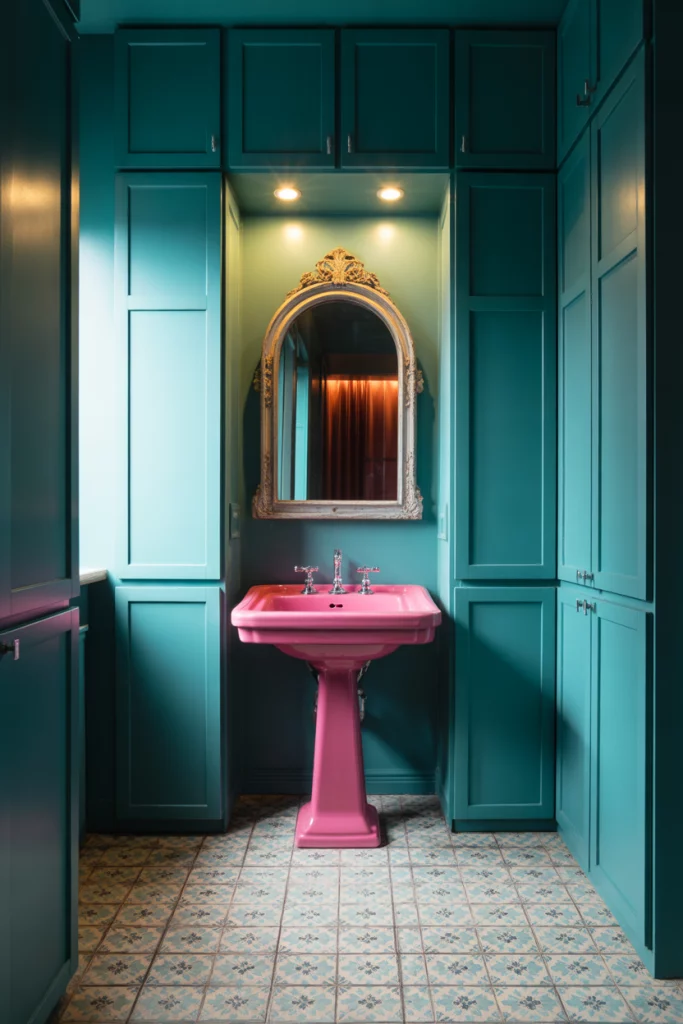 For something lighthearted, the rise of pink bathrooms in 2026 leans into playful and cute design. From pastel pink tiles to bold fuchsia cabinets, this style can transform even a tiny apartment bath into a statement. Paired with an eclectic mix of vintage mirrors and modern lighting, pink bathrooms feel both nostalgic and trendy. Designers at Elle Decor highlight pink as a color that instantly softens any space.