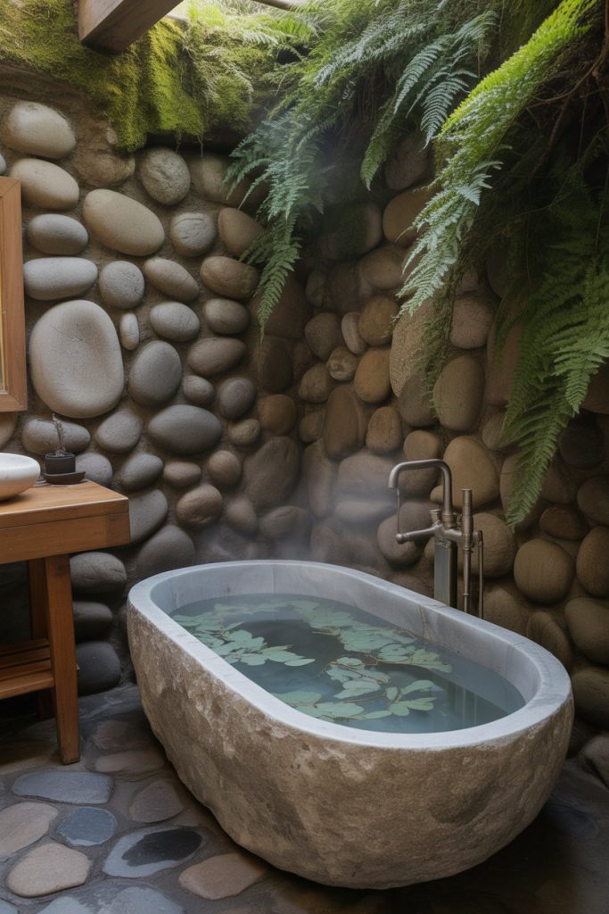 A rustic stone bathroom is perfect for those who love nature-inspired living. Rough-hewn walls, river rock flooring, and handcrafted wooden vanities create warmth and depth. This style feels particularly at home in cabins or country houses but can also bring an organic vibe to a sleek apartment. Interior blogs such as Remodelista often highlight how natural stone instantly transforms any bathroom into a calming retreat.