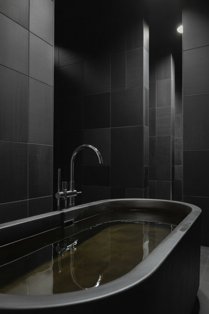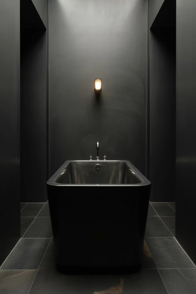 A black bathroom can feel daring but offers undeniable sophistication. Matte black walls or tiles create a moody atmosphere, while lighter fixtures balance the darkness. This approach works best in larger bathrooms but can also create intimacy in a half bath. Many modern designers agree that black is not only bold but also surprisingly versatile, pairing well with metallics or wood.