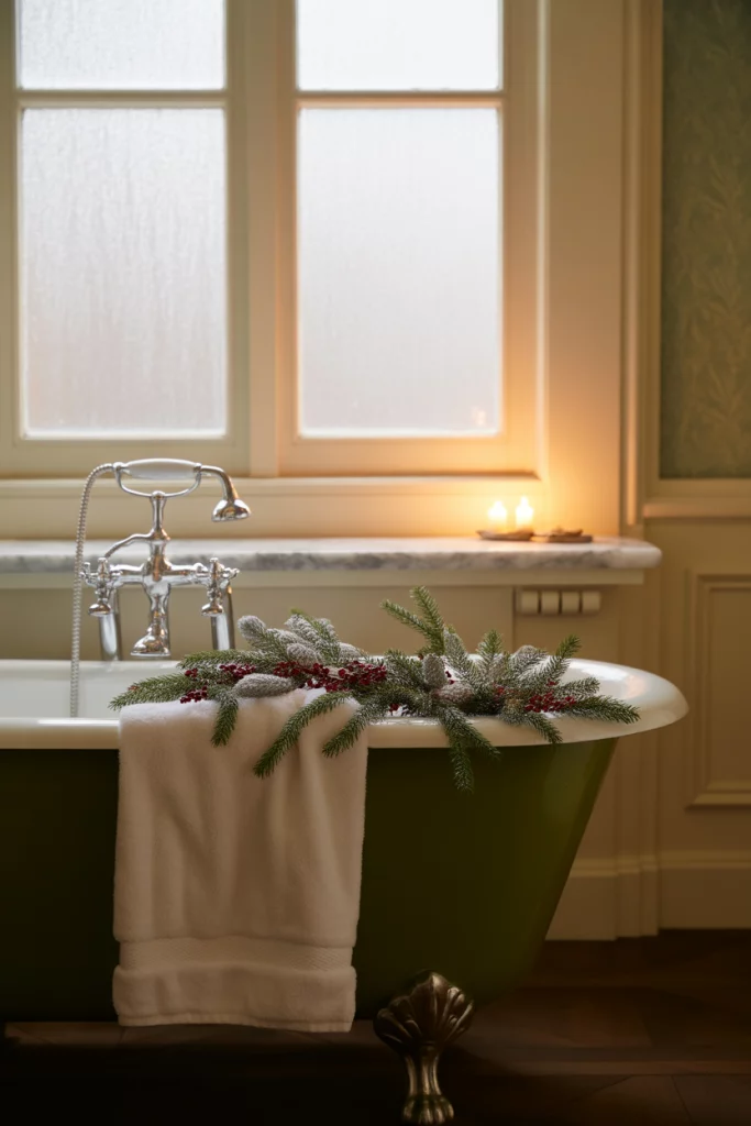 Even the guest bathroom deserves seasonal flair. In 2026, Christmas decor extends beyond the living room. Subtle wreaths, red-and-green towels, or silver accents make a temporary but memorable impact. Because guest spaces are smaller, these touches feel intentional rather than overwhelming. Writers at House Beautiful often emphasize that small holiday details go a long way in hospitality.