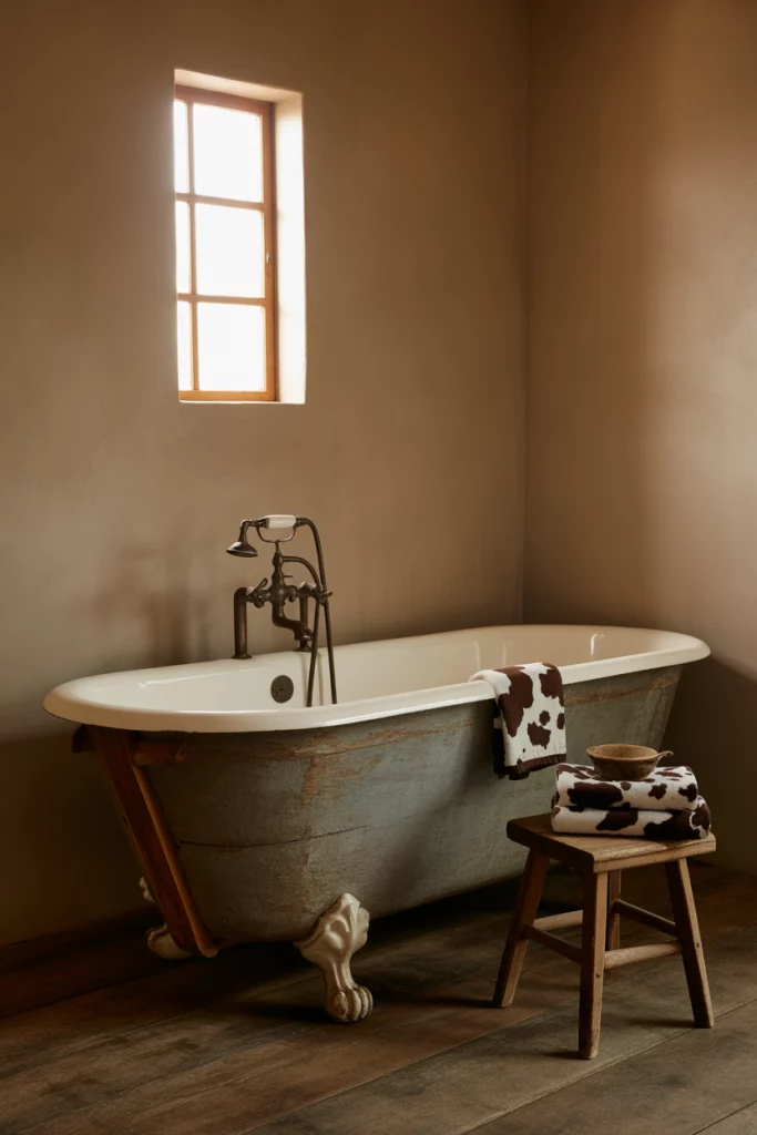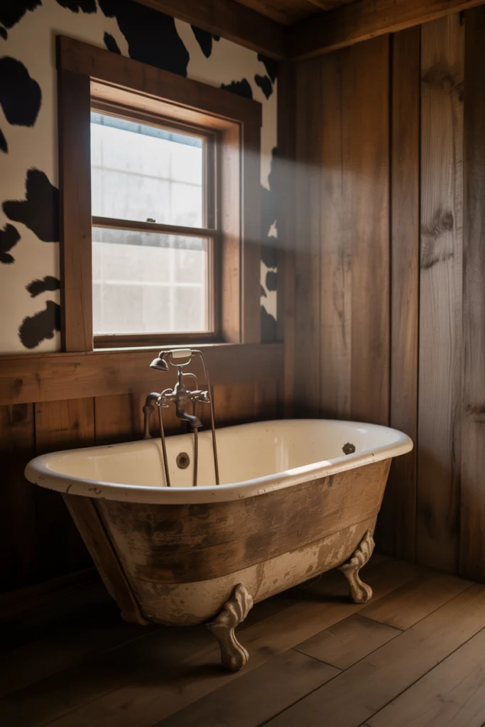 For those living in the Southwest or simply loving cowboy culture, a Western-inspired bathroom can feel both bold and authentic. Distressed wood, iron fixtures, and even cow-print rugs or shower curtains add personality. This style pairs well with homes already embracing rustic decor and looks especially striking in cabins. Western bathrooms are proof that even utilitarian spaces can tell a story about lifestyle.