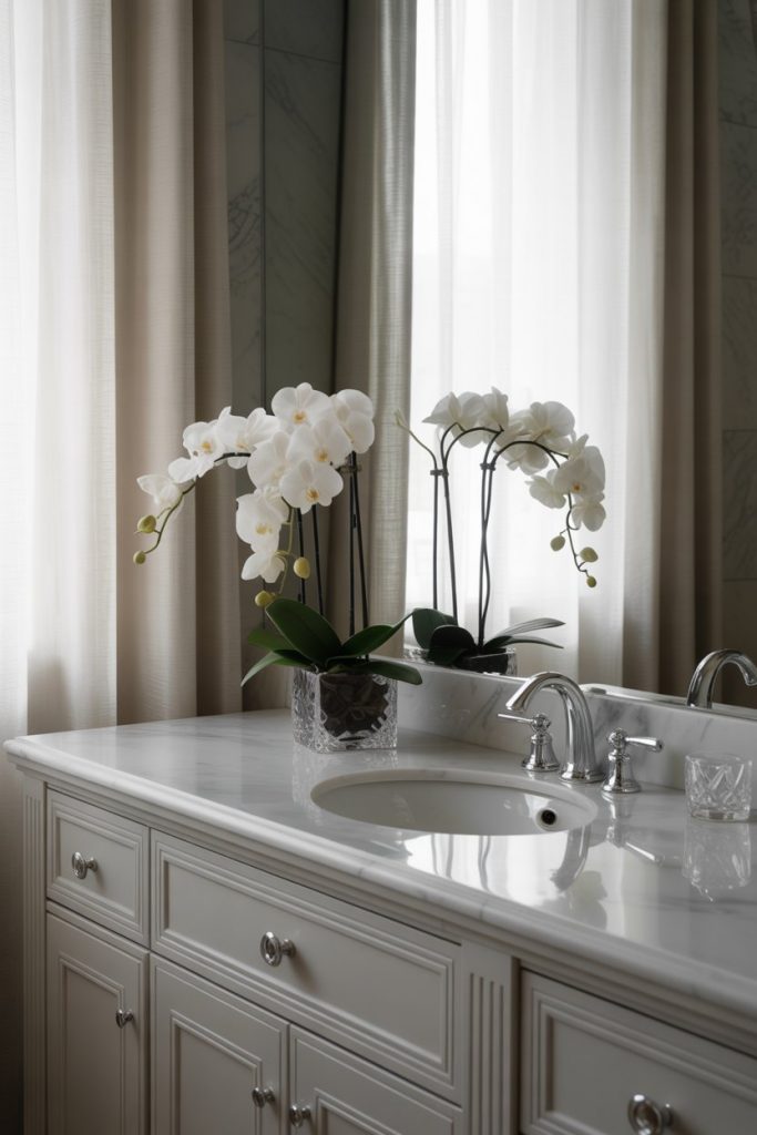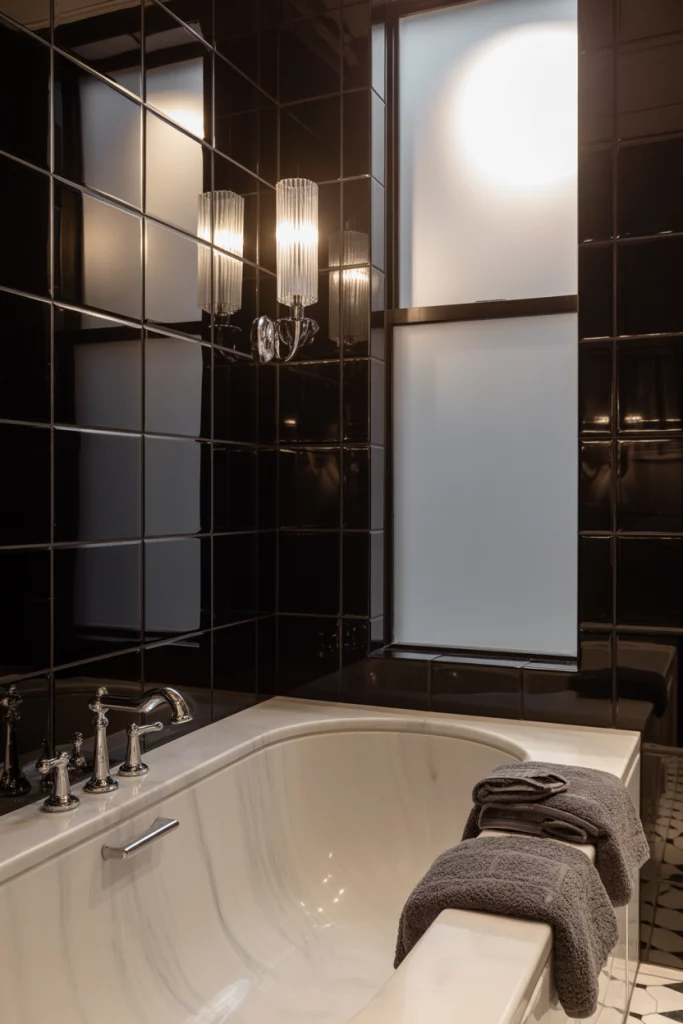 Inspired by the fashion house, a Chanel bathroom emphasizes luxurious touches in monochrome tones. Glossy black tiles, crisp white marble, and touches of silver give a chic, couture-level atmosphere. Add quilted vanity stools or perfume-inspired wall art for subtle nods. This style resonates with those who want their bathroom to feel like a high-end dressing room. As Vogue editors often note, fashion can absolutely inform interior design.