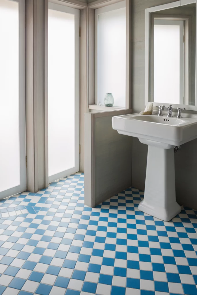 Hexagon tile in breezy coastal colors gives a bathroom movement without overwhelming the space. It works beautifully in both small bathroom layouts and larger rooms thanks to its geometric rhythm. I once visited a beach rental where pale blue hex tiles instantly made the routine feel leisurely, proving how flooring can shift the mood of an entire morning.