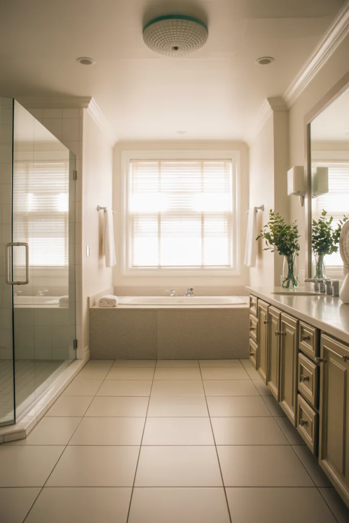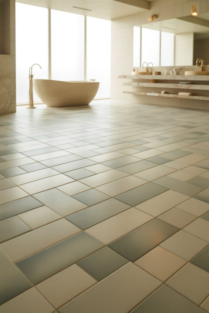 A tiled master bath with large-format porcelain or polished stone creates an unmistakably luxury feel. Designers often praise oversized tiles for visually expanding the room and reducing grout lines. I remember walking into a friend’s remodel and immediately noticing the hotel-like calm—it’s a flooring approach that turns a simple shower into a ritual.