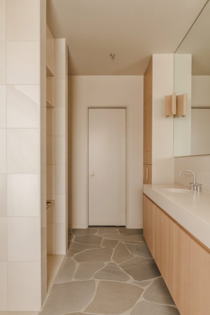 A minimalist bathroom benefits from stone-look tile in soft neutrals that keep the space calm and clutter-free. I once stayed in a small rental with smooth porcelain tiles that turned simple routines into quiet moments. This style suits people who appreciate clean lines, understated textures, and a serene, modern rhythm.