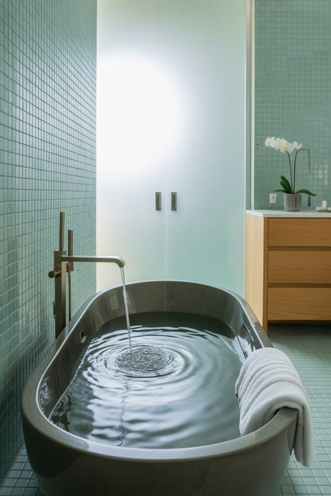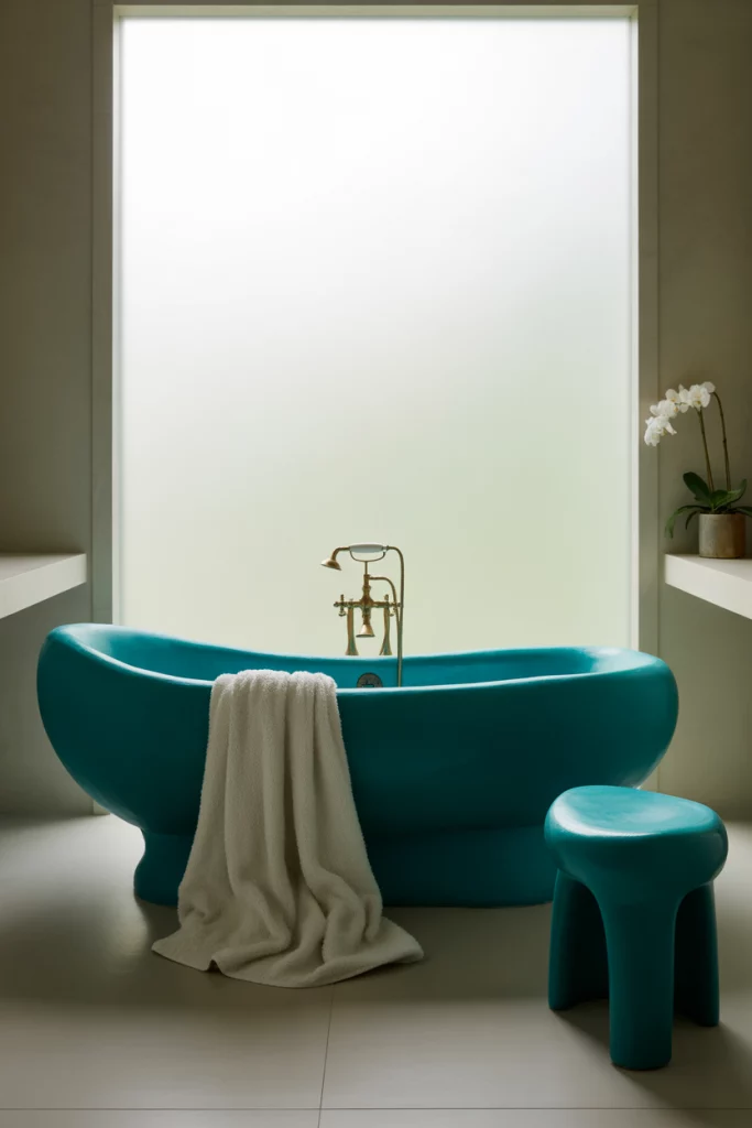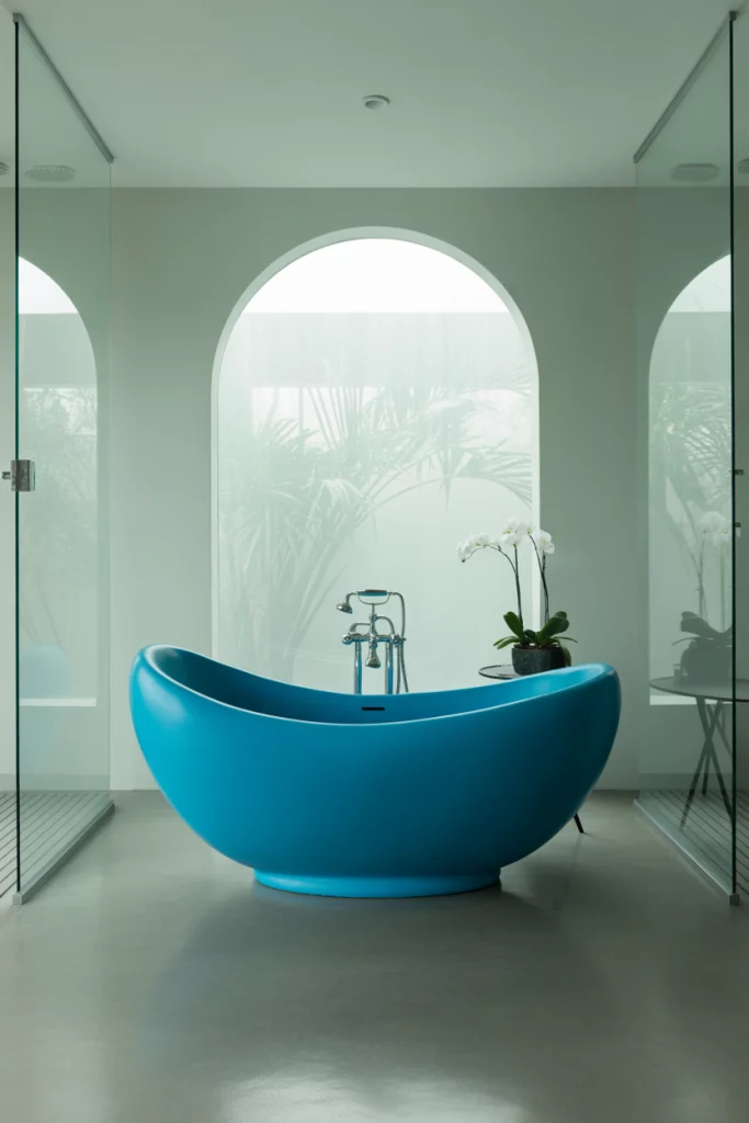 In 2026, freestanding tubs in unusual shapes and bold colors are the star of the show. A blue or pink tub becomes a sculptural centerpiece in a primary bath. According to Architectural Digest, these pieces add personality and turn everyday routines into a luxury moment.