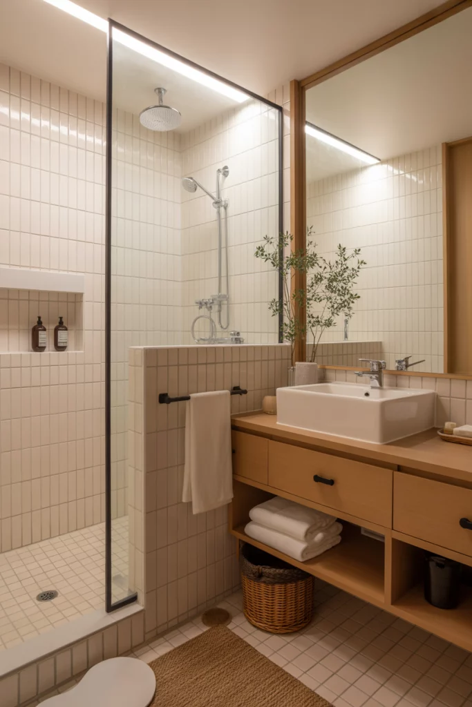 Blending Japanese minimalism with Scandinavian comfort, Japandi bathrooms use neutral palettes, natural textures, and clean lines. This style works beautifully in small half baths where a serene mood is desired. Designers love how Japandi emphasizes balance and simplicity while feeling timeless.