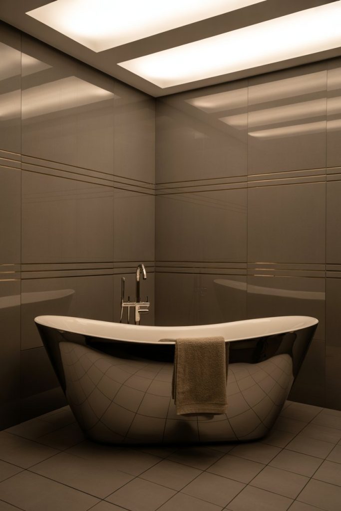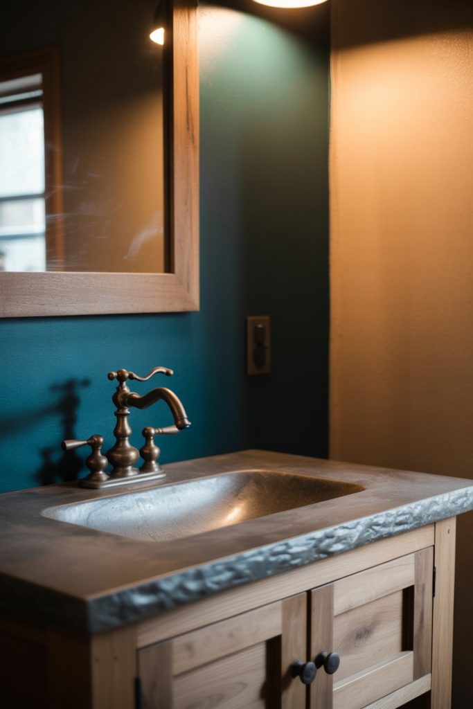Adding metallics like brushed gold, rose gold, or matte silver instantly elevates a modern bathroom. Fixtures, mirrors, or even tiles with metallic sheen can make a half bath sparkle. Many decorators recommend pairing metallics with grey or black to balance the shine.