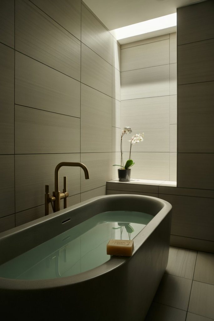 The grey palette remains a favorite for its ability to feel both neutral and elevated. Whether in a small half bath or a spacious primary, layering grey tiles with metallic finishes creates an elegant yet understated vibe. Designers at Elle Decor note that grey bathrooms are a safe bet for resale value while still offering endless creative opportunities, especially when paired with textured stone or wood.