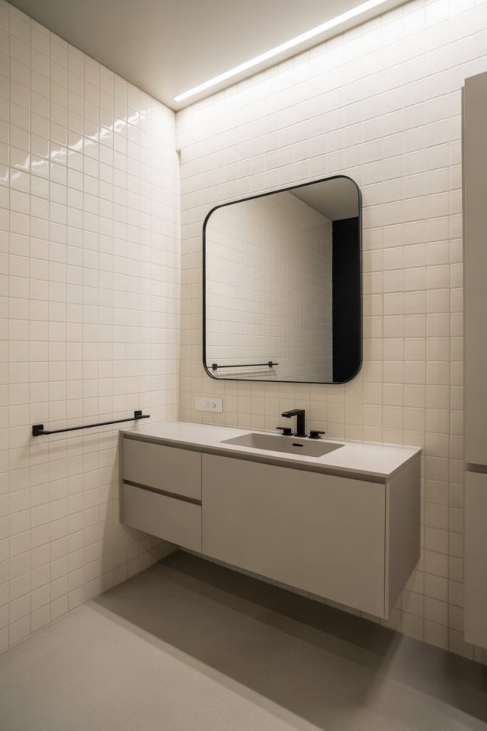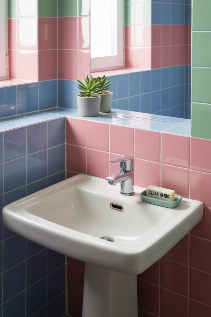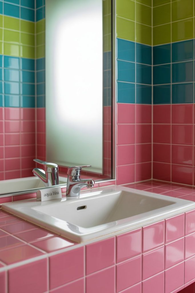 Bathrooms inspired by bold color-blocking trends create playful energy. Imagine a cute dorm bathroom with squares of blue, pink, and green tiles. According to interior design blogs, color-blocking adds a youthful, energetic vibe, especially in shared or smaller spaces.