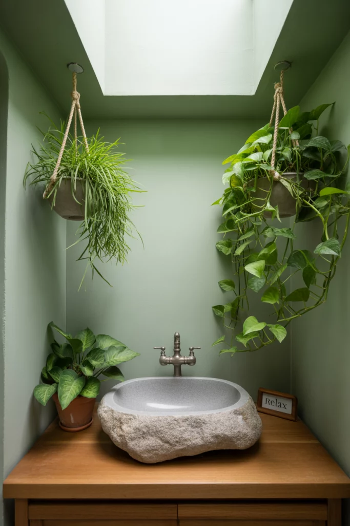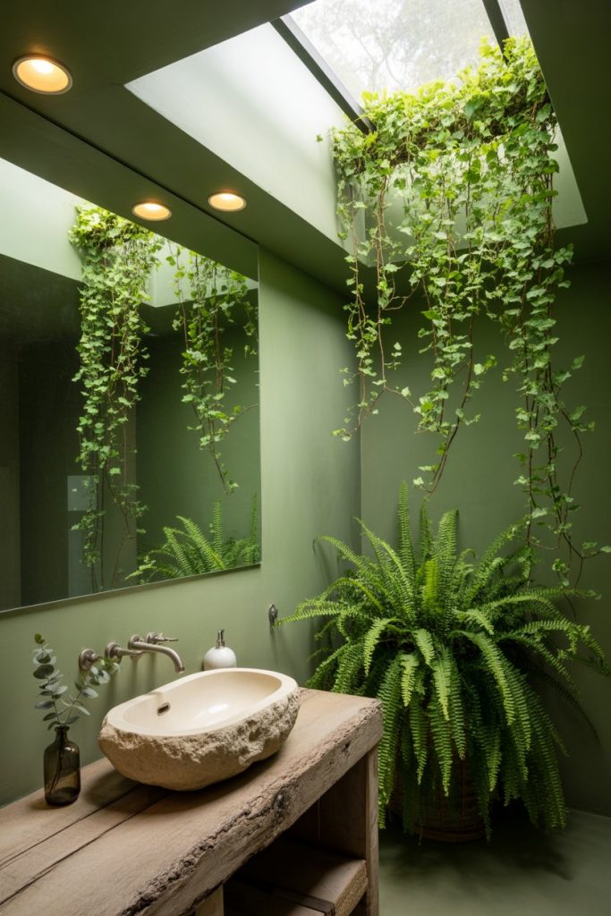 Biophilic design is at the forefront of 2026 trends, with green walls, potted plants, and sustainable materials dominating. A guest bath becomes instantly refreshing with leafy ferns or climbing vines, while larger primary suites can feature skylights to flood the room with natural light. Experts like Apartment Therapy note that greenery not only adds beauty but also improves air quality, making this idea both stylish and practical.