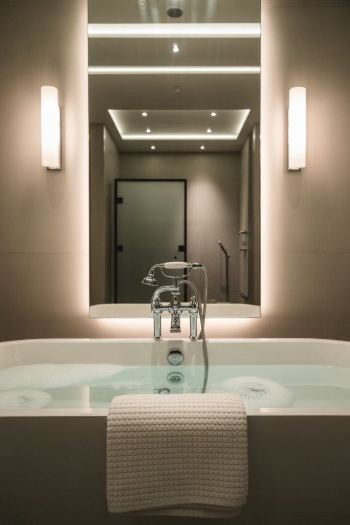 Lighting is no longer just practical—it’s layered for mood and function. In primary baths, sconces, recessed lighting, and backlit mirrors combine for drama. A guest bath feels more inviting with soft, neutral light that flatters. Experts say good lighting design can make even a small full bath luxurious.