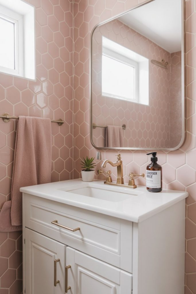 While grey and neutral shades dominate many remodels, 2026 makes room for playful pink accents. Think blush vanities, rose-tinted tiles, or soft towels that brighten up a tiny bath without overwhelming. As Domino magazine notes, pink has become gender-neutral in design, often paired with white or brass finishes for a chic, contemporary look. Even a dorm bathroom feels upscale with this touch.