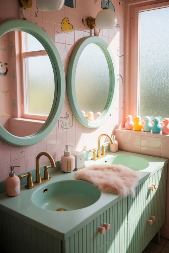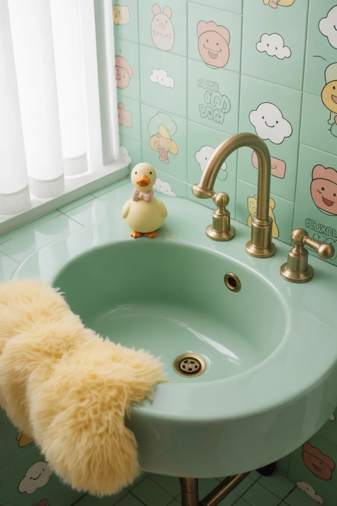 Playful design isn’t just for kids. Inspired by Toca boca and Bloxburg, many homeowners are adding cute touches like whimsical wallpapers, pastel sinks, or fun-shaped mirrors. This works especially well in guest or dorm bathrooms where personality matters more than permanence. As Design Milk highlights, these small details make visitors smile and reflect the homeowner’s unique personality.