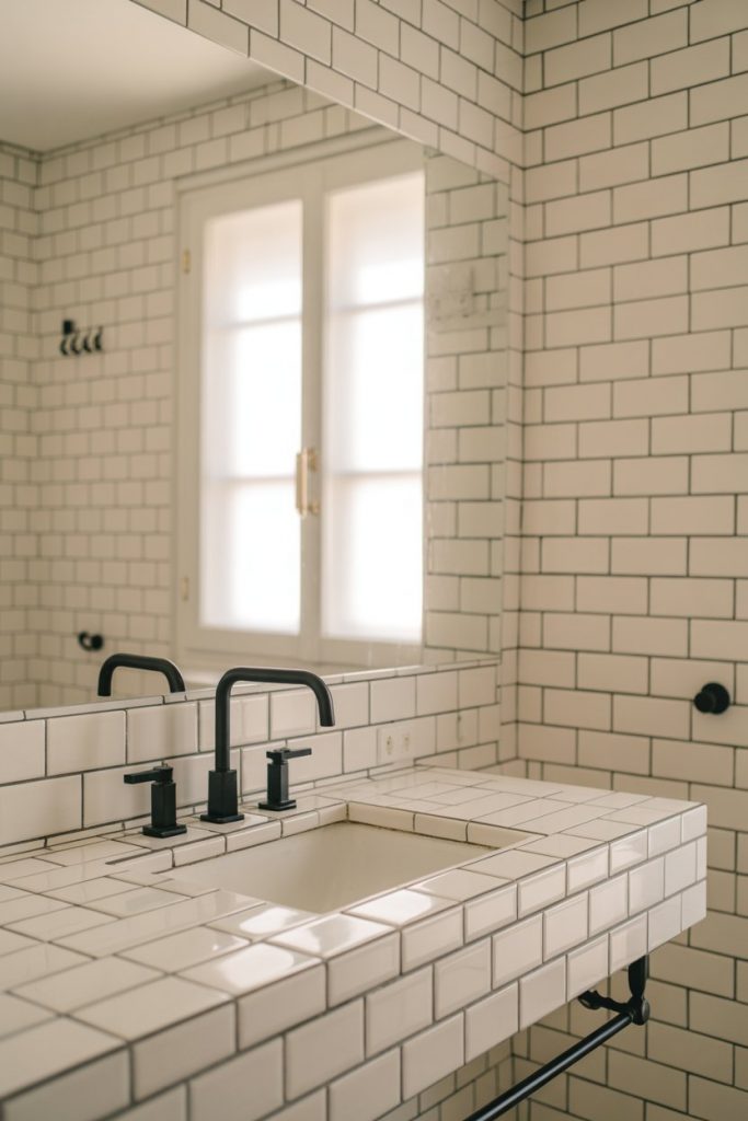 While white grout is the safe, simple choice, using colored grout—charcoal, navy, or even terracotta—adds dimension and personality without the commitment of patterned tile. This easy, relatively cheap trick is a favorite among DIY renovators who want to make a statement in a small bathroom or powder room. Darker grout also hides dirt and staining better than white, making it a practical choice for families or high-traffic guest bathrooms.