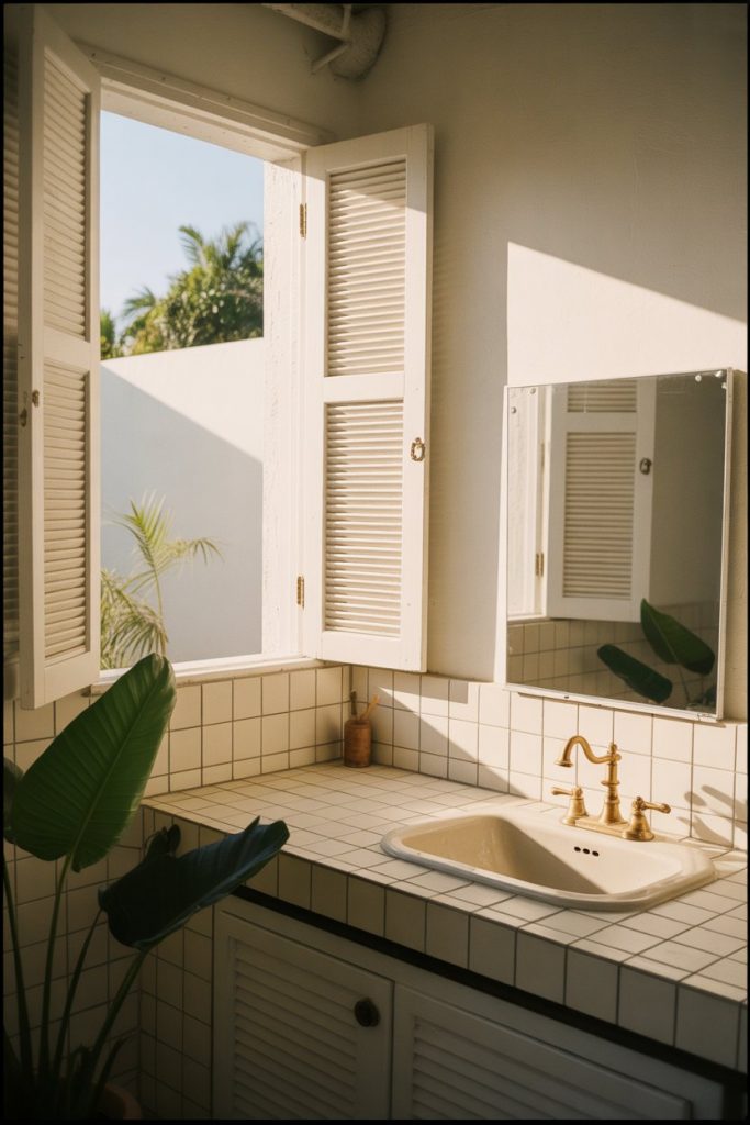 Drawing inspiration from traditional Queenslander homes in Australia, incorporating louvered windows or transom vents into your bathroom renovation improves airflow and reduces moisture buildup—a challenge in many American climates, especially the humid South. This simple design feature adds architectural interest while serving a practical function, and it’s a smart addition to guest bathrooms or basic powder rooms that lack mechanical ventilation. It’s a detail that feels both classic and functional.