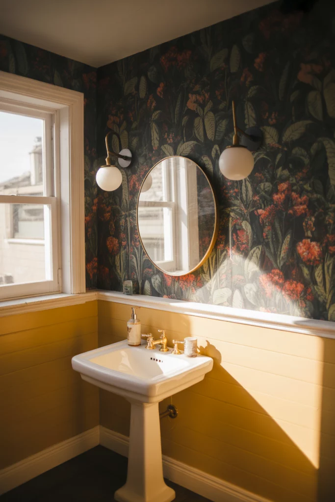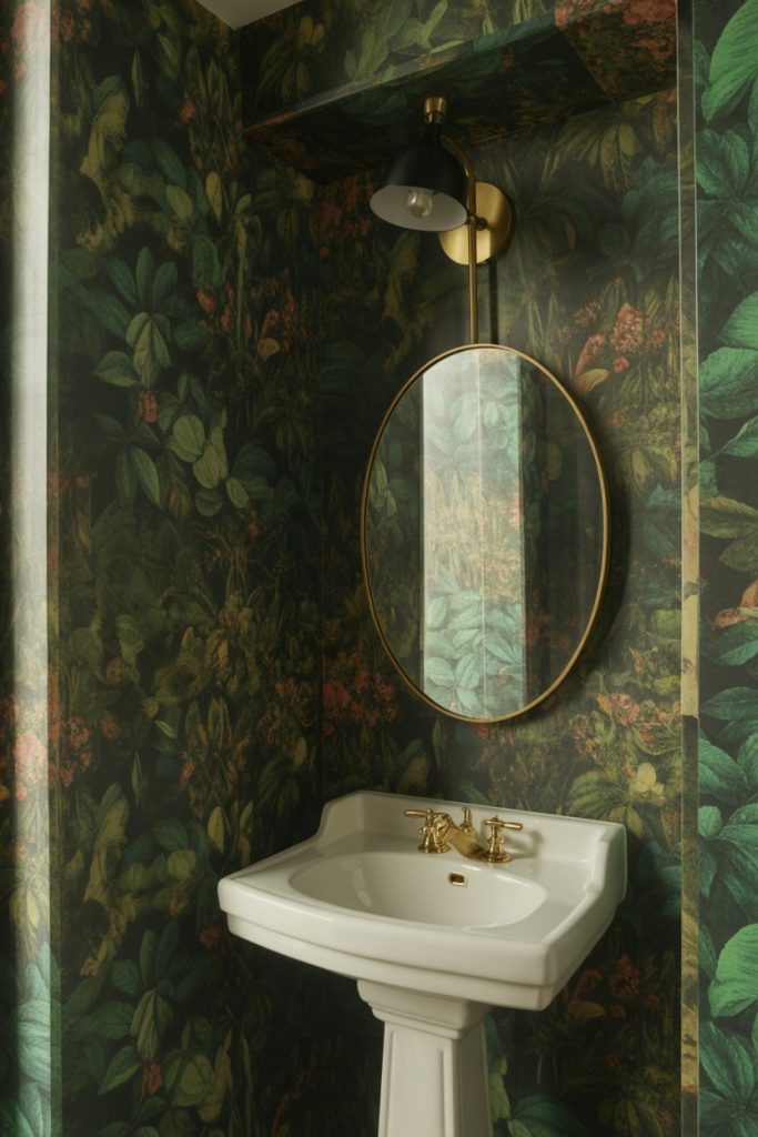 A guest bathroom or powder room is the perfect place to experiment with bold wallpaper, turning a small utilitarian space into a memorable design moment without committing to pattern throughout the entire home. This idea is especially popular among Americans who want inspiration from high-end design magazines but aren’t ready for a full renovation. Peel-and-stick options make this a DIY-friendly project that can be completed in a weekend.