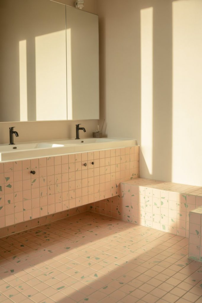 Expert-style commentary notes that terrazzo pairs beautifully with simple, solid-colored walls and fixtures—let the floor be the star. It’s especially popular in mid-century modern renovations and 1980s throwback designs, where nostalgic materials are being reimagined with fresh palettes. Budget-conscious renovators can achieve a similar look with terrazzo-look porcelain tiles, which are easier to install and more affordable than true terrazzo.