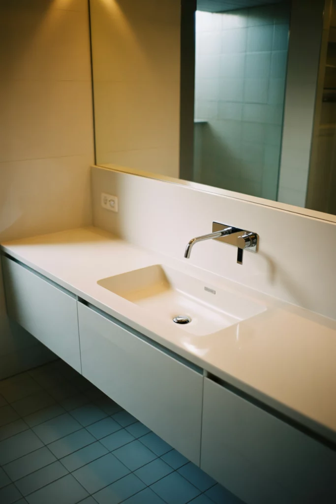 Practical insight: Floating vanities require solid wall anchoring—make sure to locate studs or use appropriate wall anchors rated for the weight of the cabinet plus countertop and sink. Storage is more limited than with a traditional vanity, so this works best for minimalists or in powder rooms where you don’t need to store much. Pair it with a mirrored medicine cabinet to make up for lost storage space.
