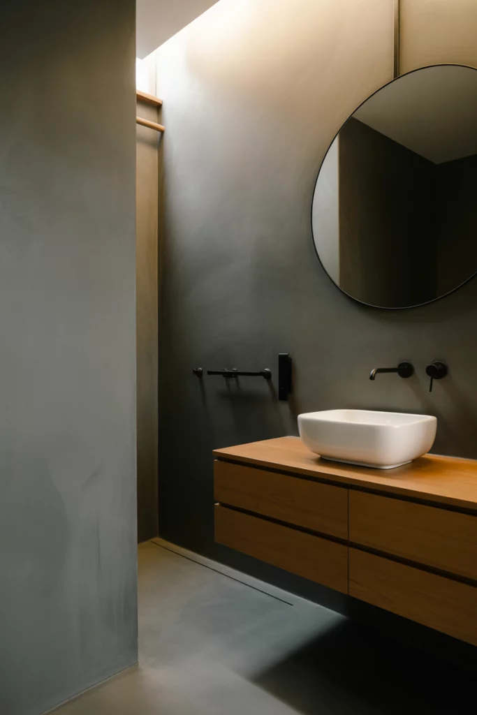 One of the freshest bathroom renovation trends is microcement, a seamless, durable material that creates a sleek, contemporary look across walls and floors without grout lines. Popular in European design and now gaining traction in U.S. modern homes, microcement offers a spa-like aesthetic that’s perfect for simple minimalist bathrooms. It’s water-resistant, easy to clean, and works in both small spaces and larger master suites.